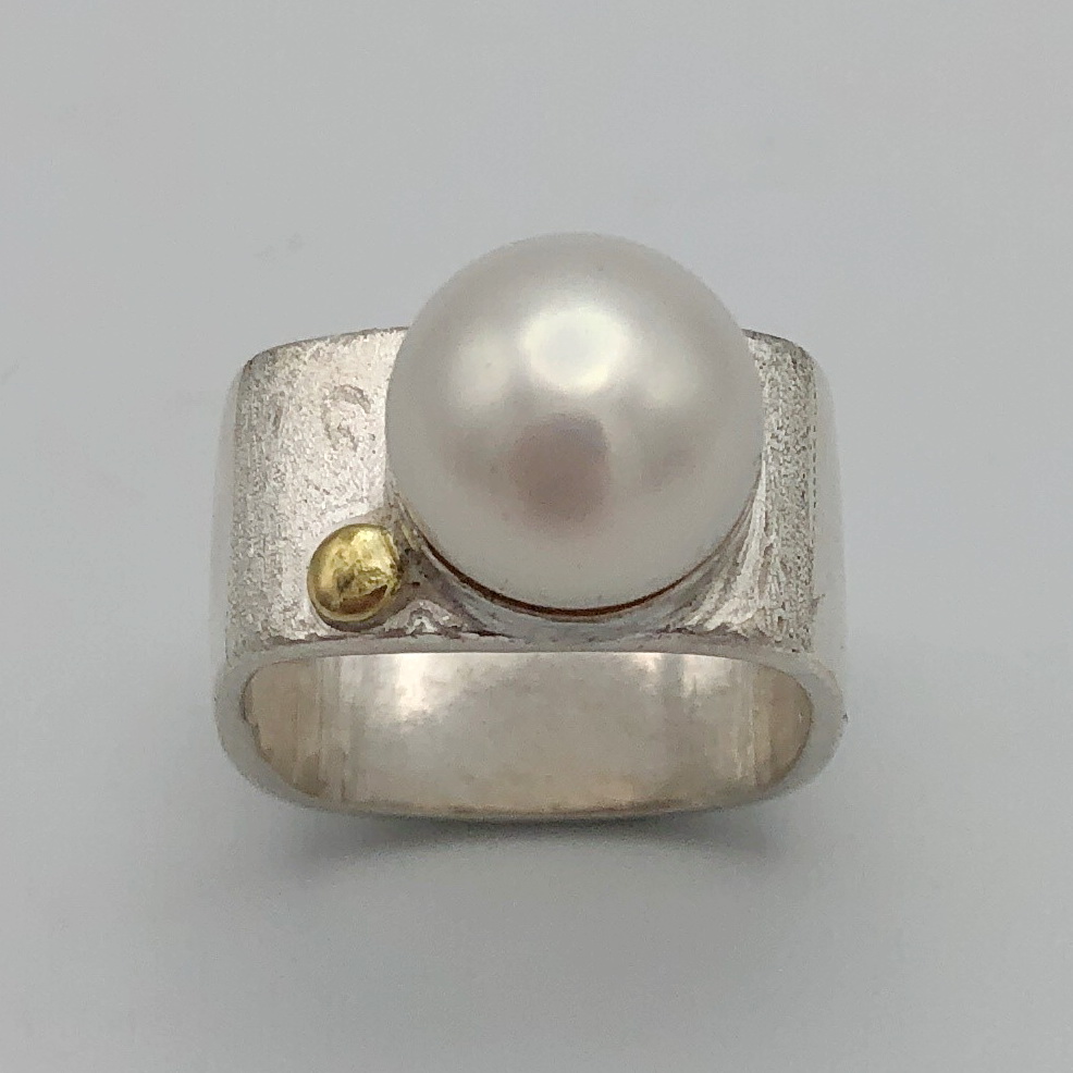 Large Square Ring with Mabe White Pearl & 18kt. Gold by Chi’s Creations