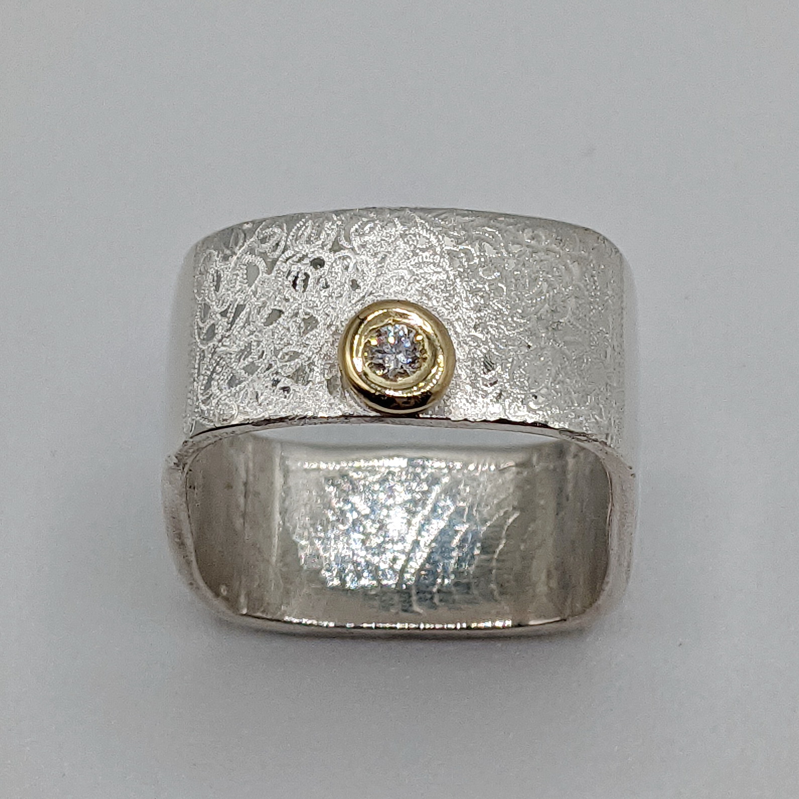 Large Square Stacker Ring with 18kt. Gold & Diamond by Chi’s Creations