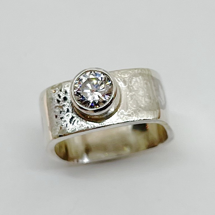 Large Square Stacker Scribbled Ring with Cubic Zirconia by Chi’s Creations
