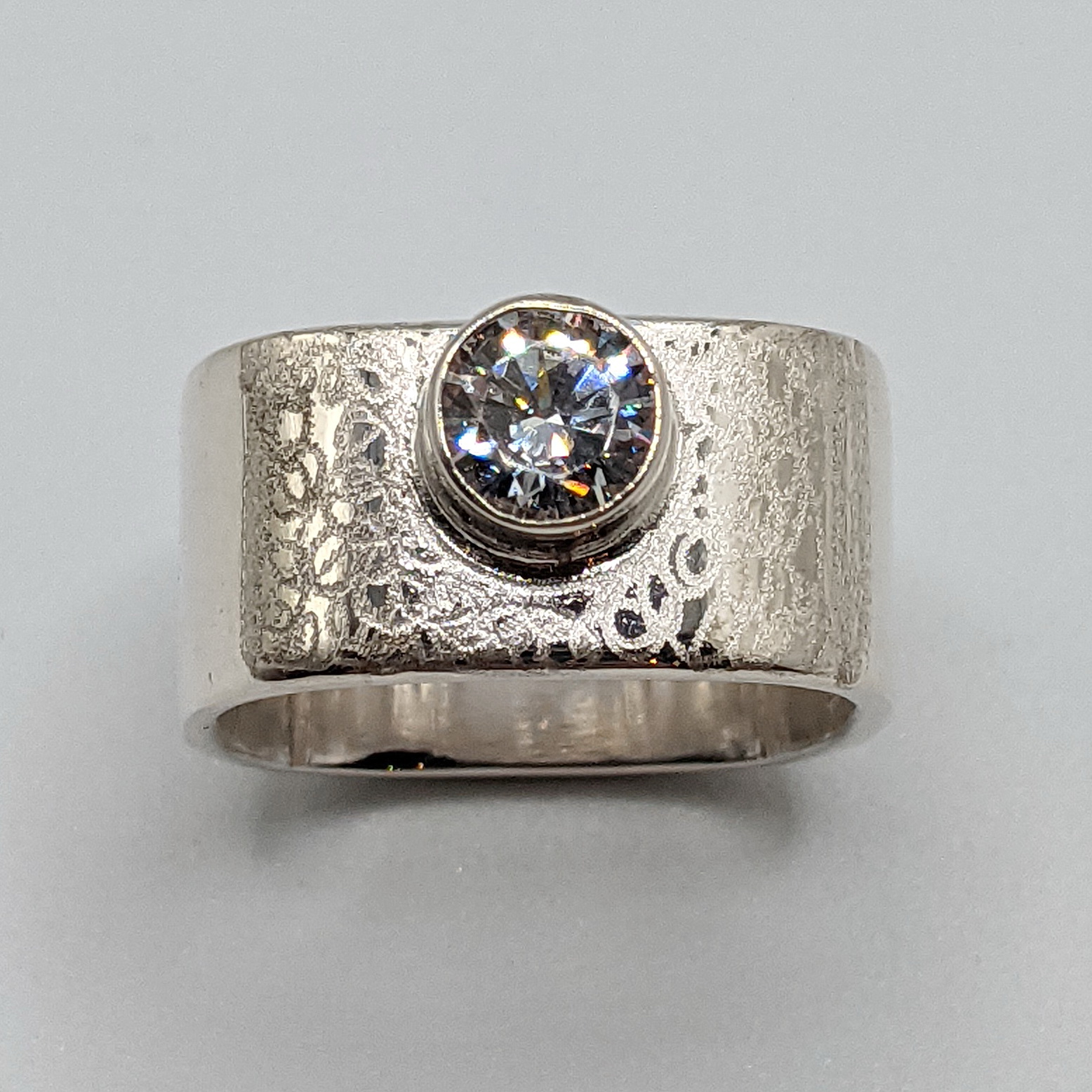 Large Square Stacker Scribbled Ring with Cubic Zirconia