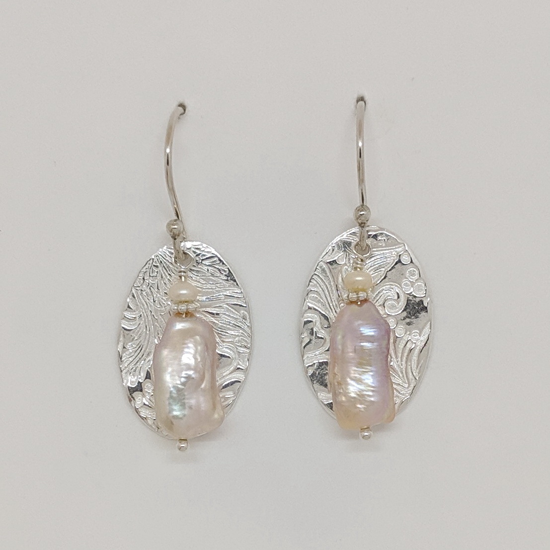 Large Textured Oval Earrings with Pearls by Veronica Stewart