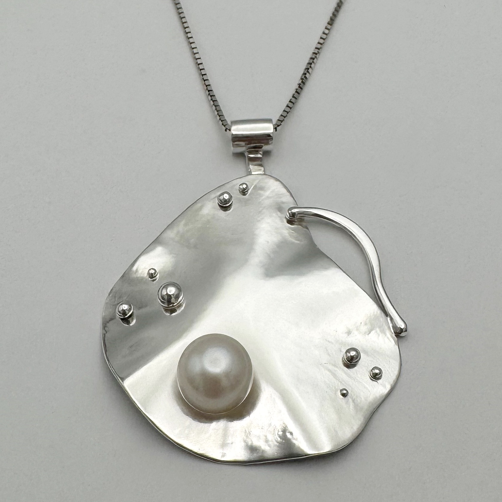 Lily Pad Pendant with Pearl by A & R Jewellery