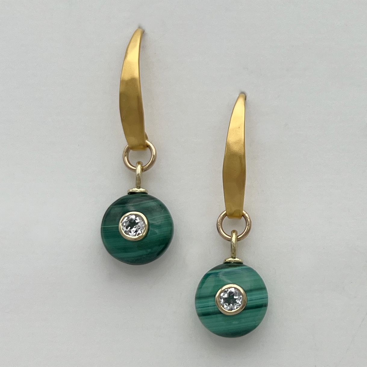Malachite, Kunzite & Gold-Plated Earrings by Val Nunns