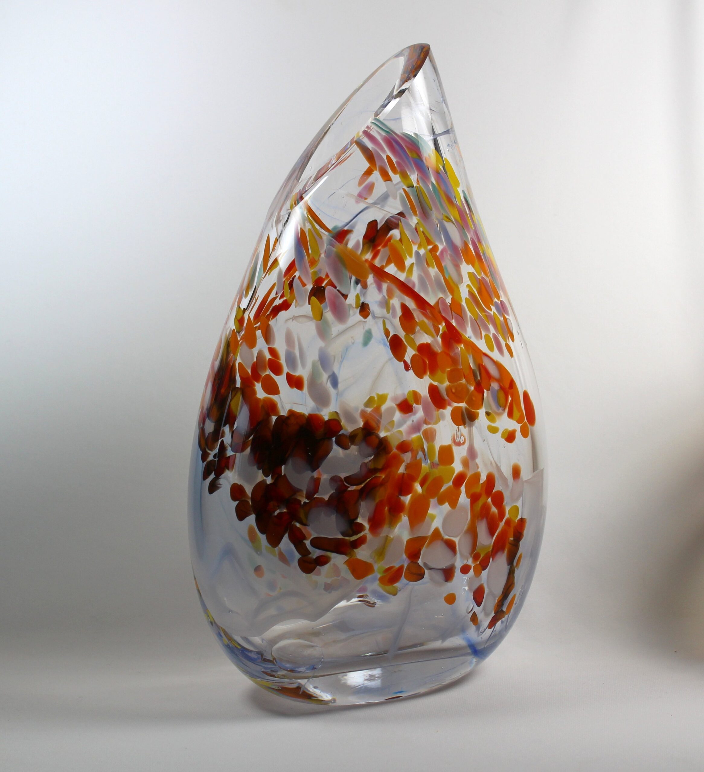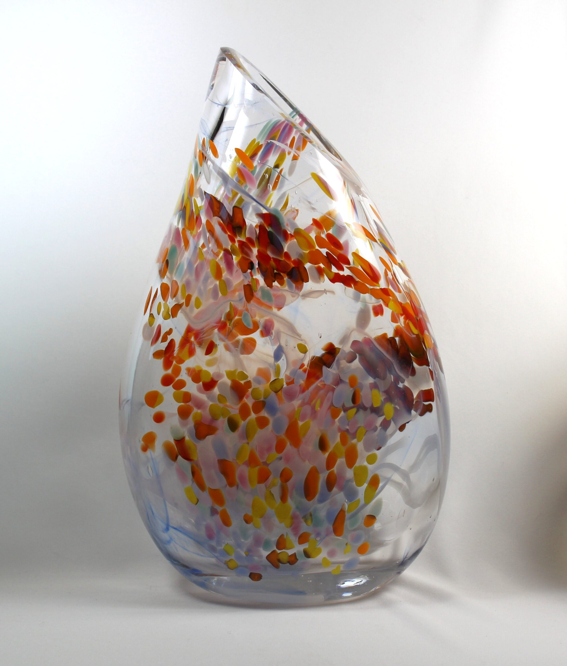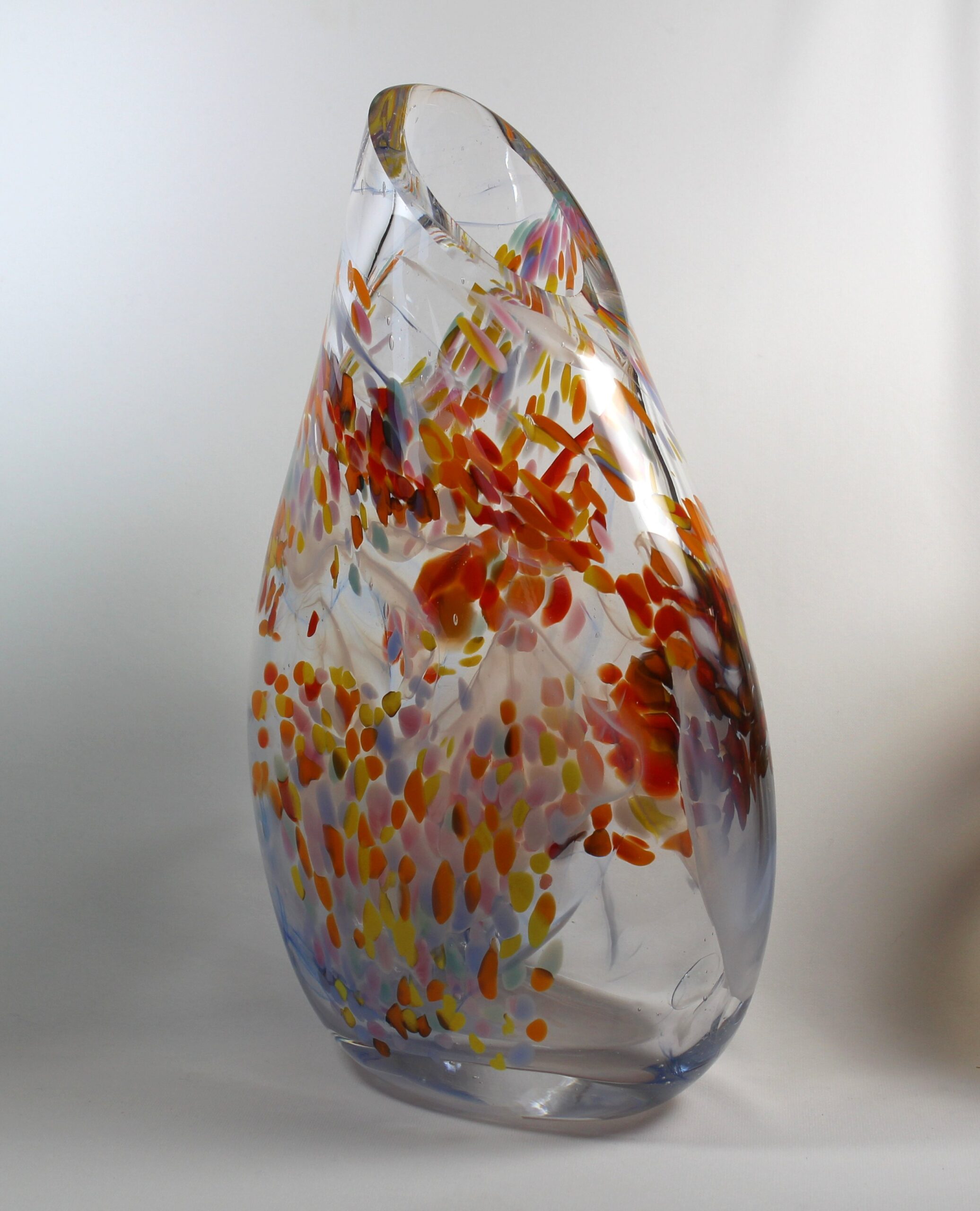 “A vibrant mix of colours vie with the transparency of the glass to make this an eye-catching piece.” – Guy Hollington