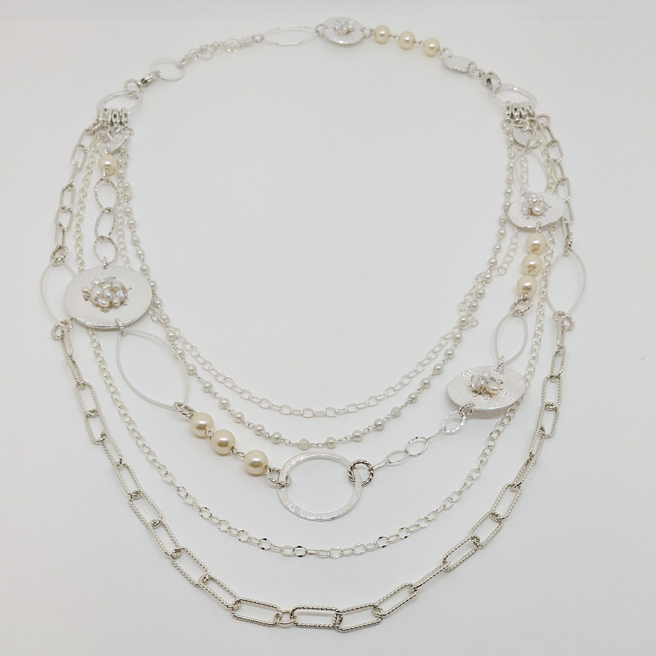 Multistrand Necklace with Freshwater Pearls & Swarovski Crystals by Veronica Stewart