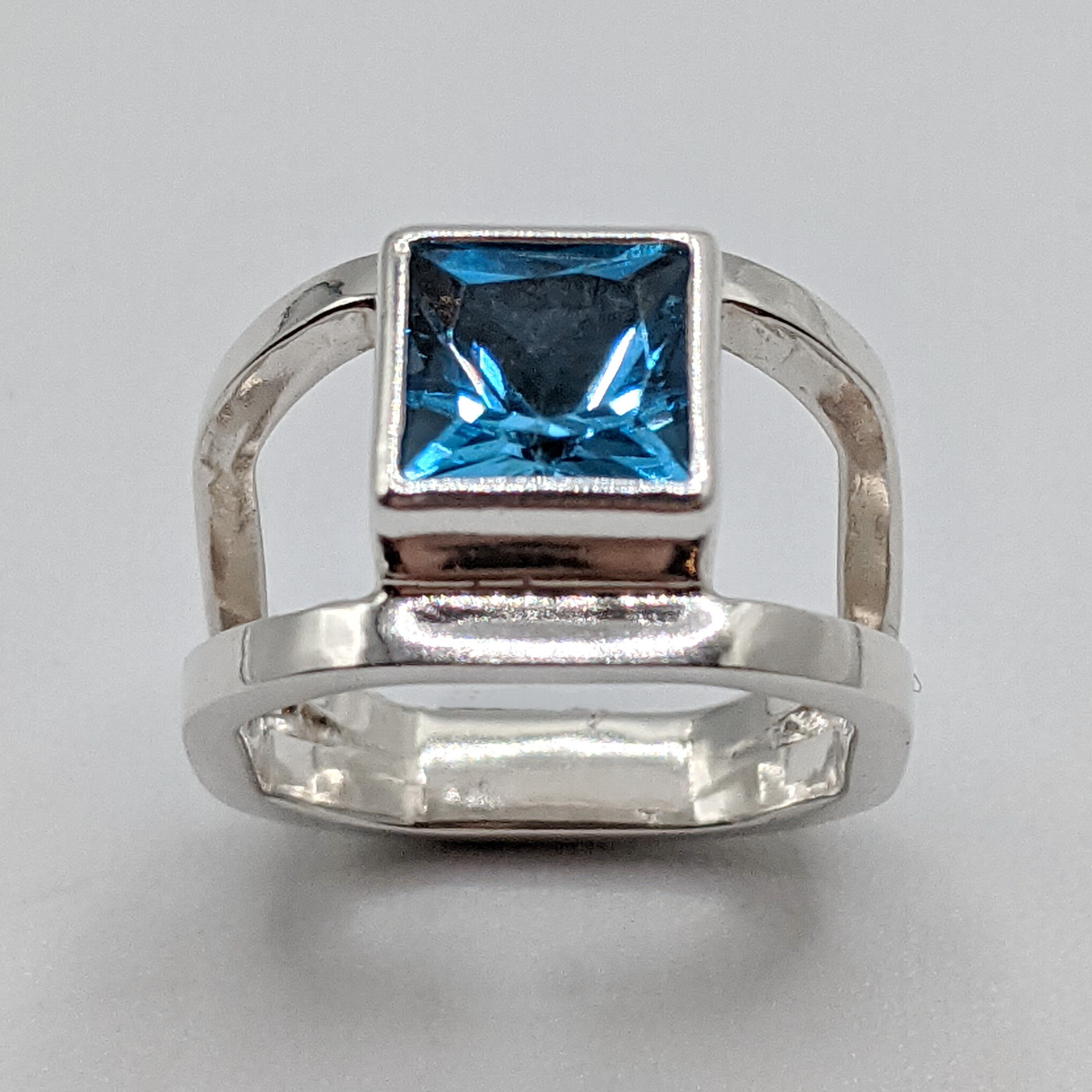 Octagon Double-Band Ring with London Topaz by A & R Jewellery