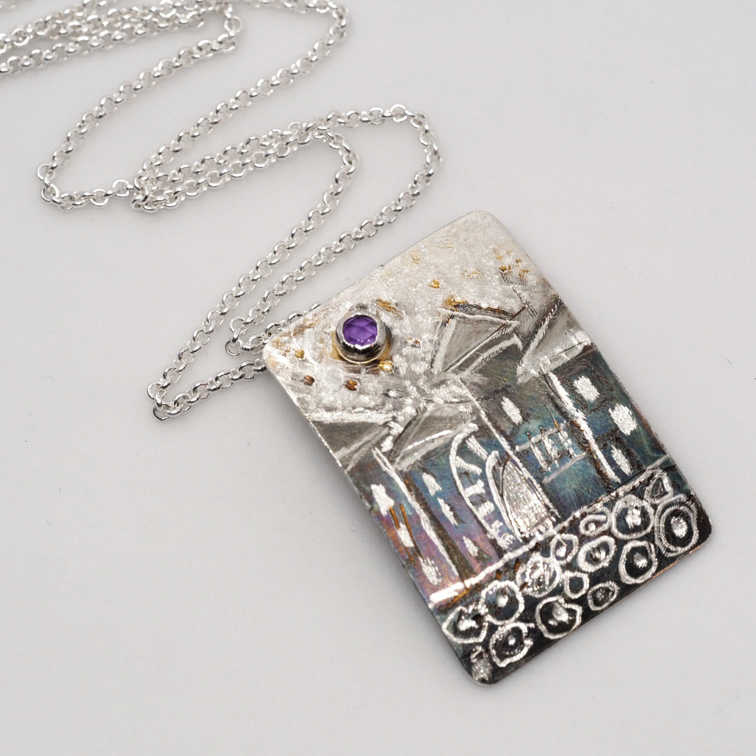 Sterling Silver (Oxidized), Amethyst stone (0.12 in), Sterling Silver chain