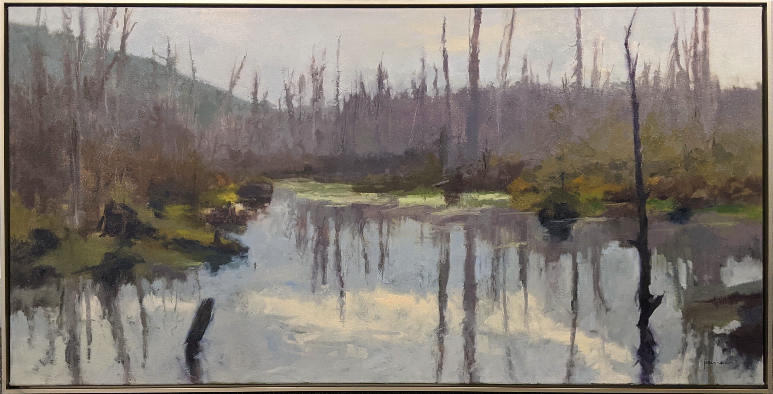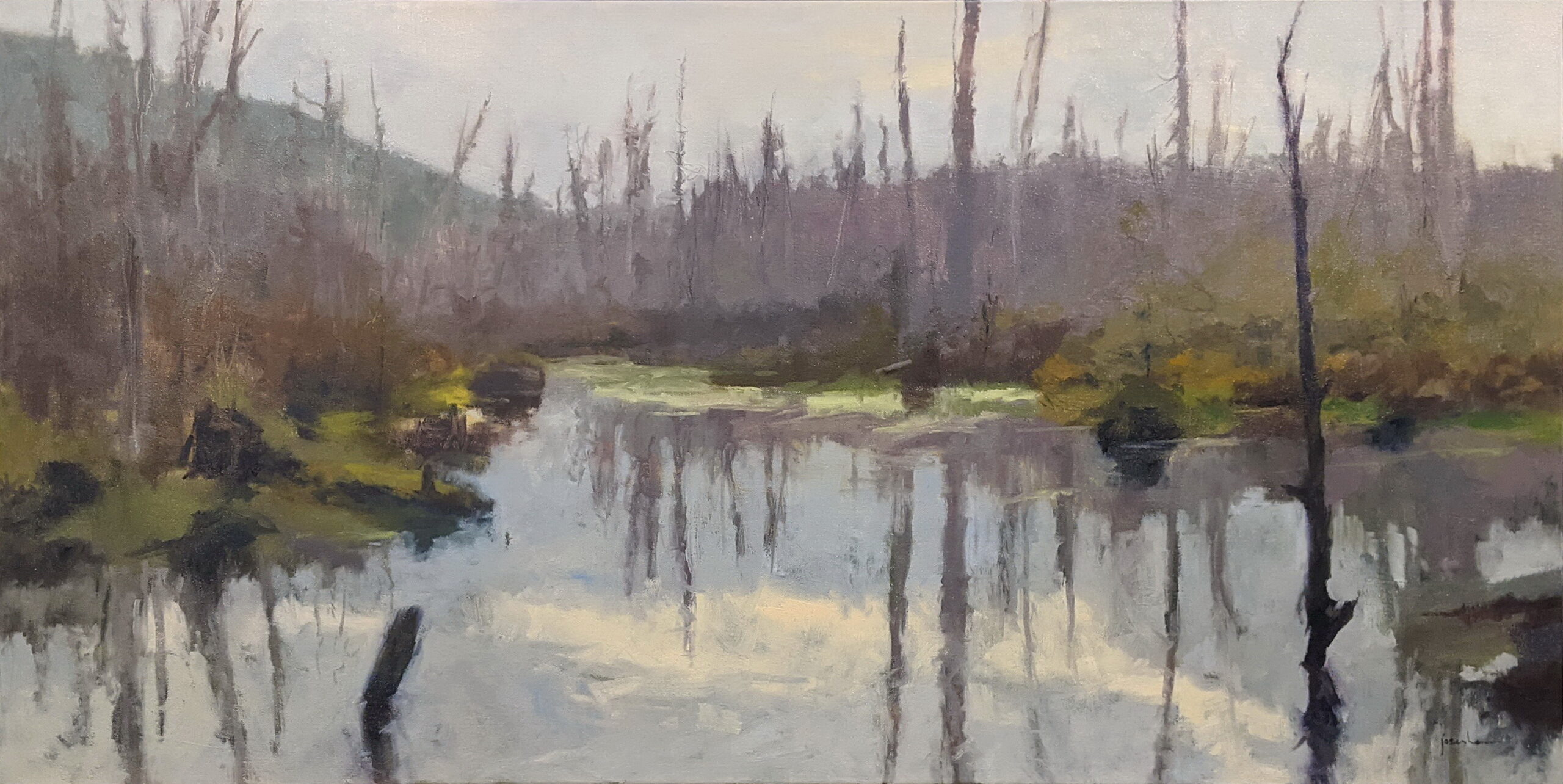 “Haida Gwaii is truly one of the most beautiful places I have ever had the privilege of painting. The rhythm and pulse of the landscape seem indescribable except when expressed in paint. ‘On The Way To Gray Bay, Haida Gwaii’ is based directly on a study I painted on location on Moresby Island. Having passed this spot several times, I waited until the moment was just right to capture the quiet stillness of this beaver pond in the wild.” – Maria Josenhans