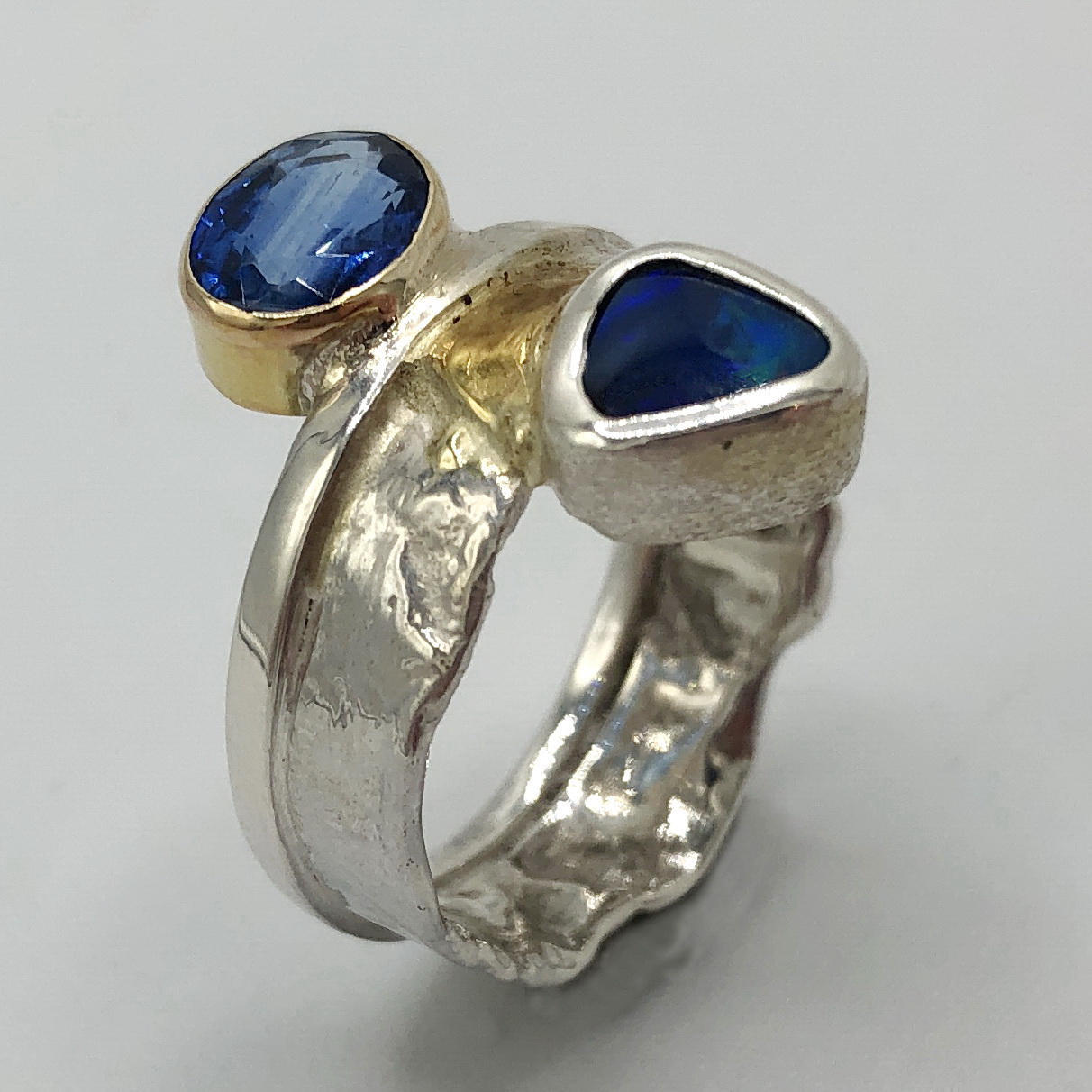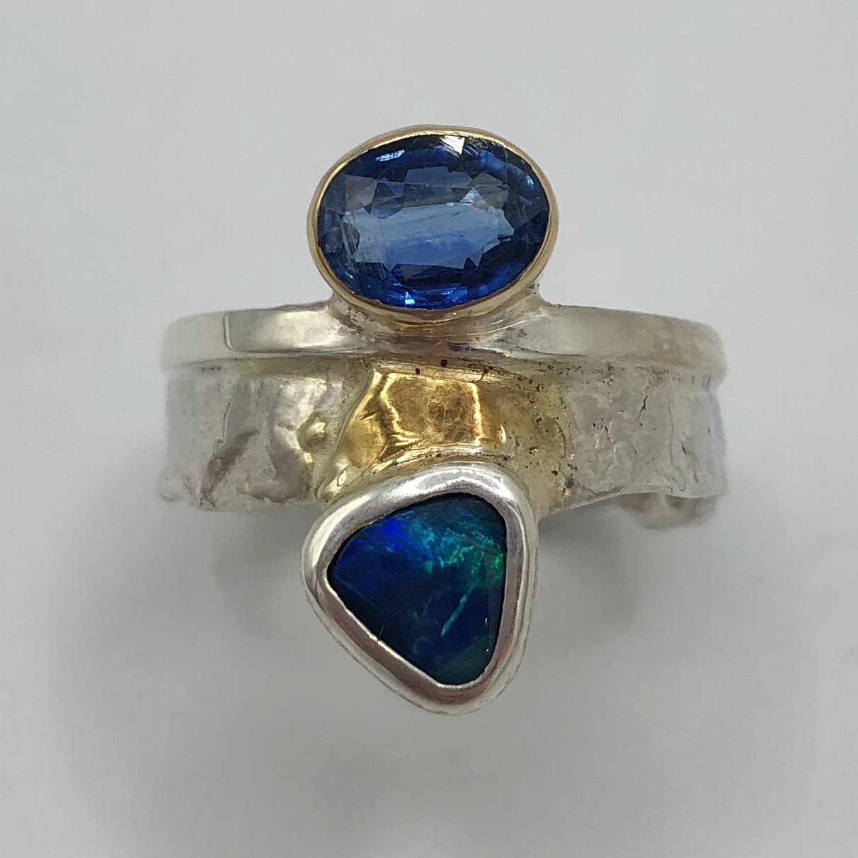 Opal Doublet & Kyanite Ring by Andrea Russell