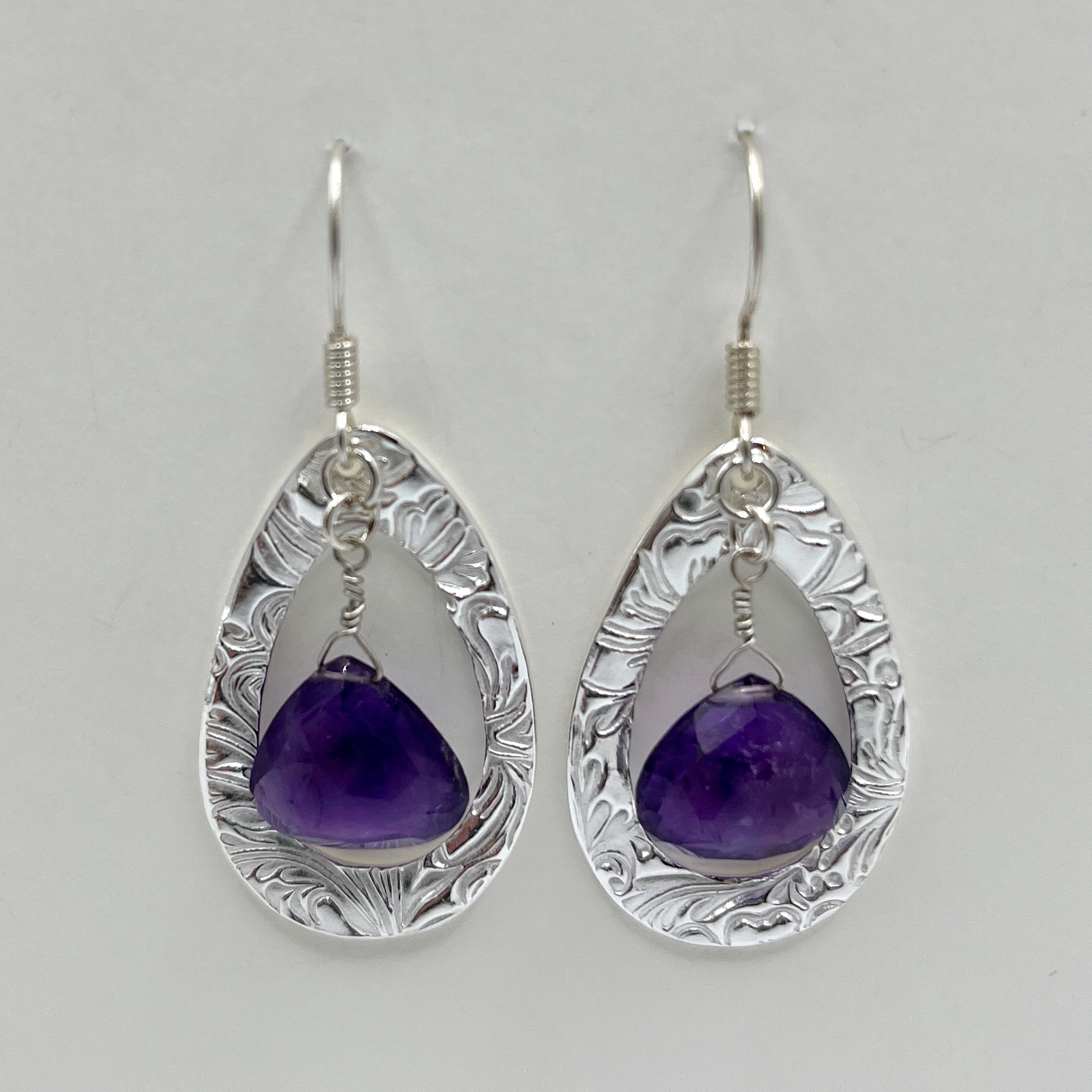 Open Textured Oval Earrings with Amethyst Drops by Veronica Stewart