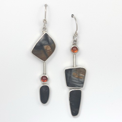 Picasso Jasper & Hessonite Garnet Earrings by Brenda Roy