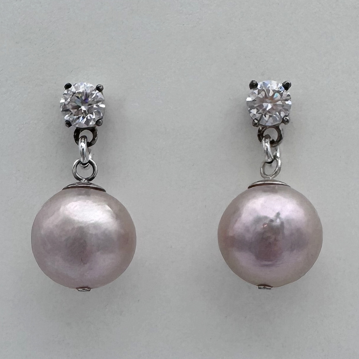 Pink Pearl & Lab Grown Diamond Earrings by Val Nunns