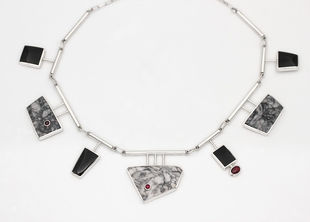Pinolith, Black Jade & Garnet Necklace by Brenda Roy