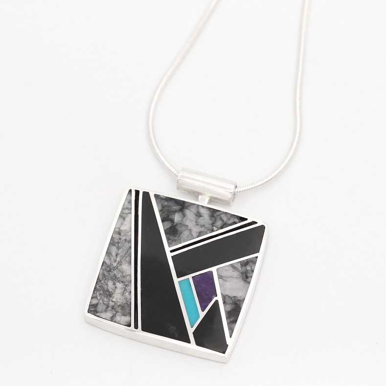 Sterling Silver, Pinolith, Black Jade, Sugilite, Turquoise
