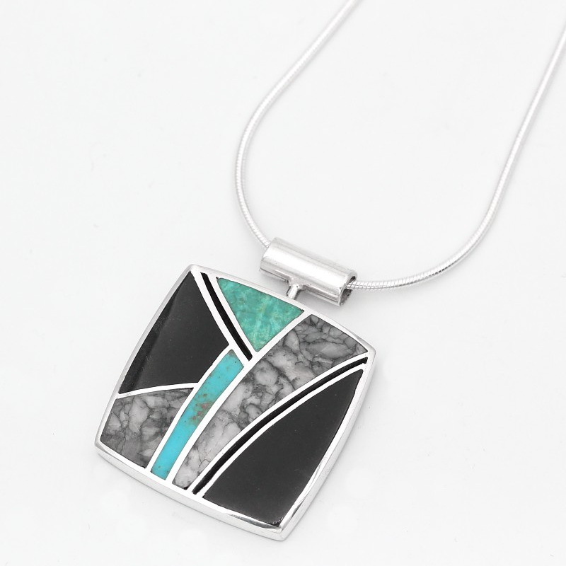 Pinolith, Black Jade & Turquoise Pendant by Brenda Roy