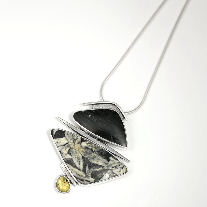 Pinolith, Picasso Jasper & Rosecut Yellow Tourmaline Pendant by Brenda Roy