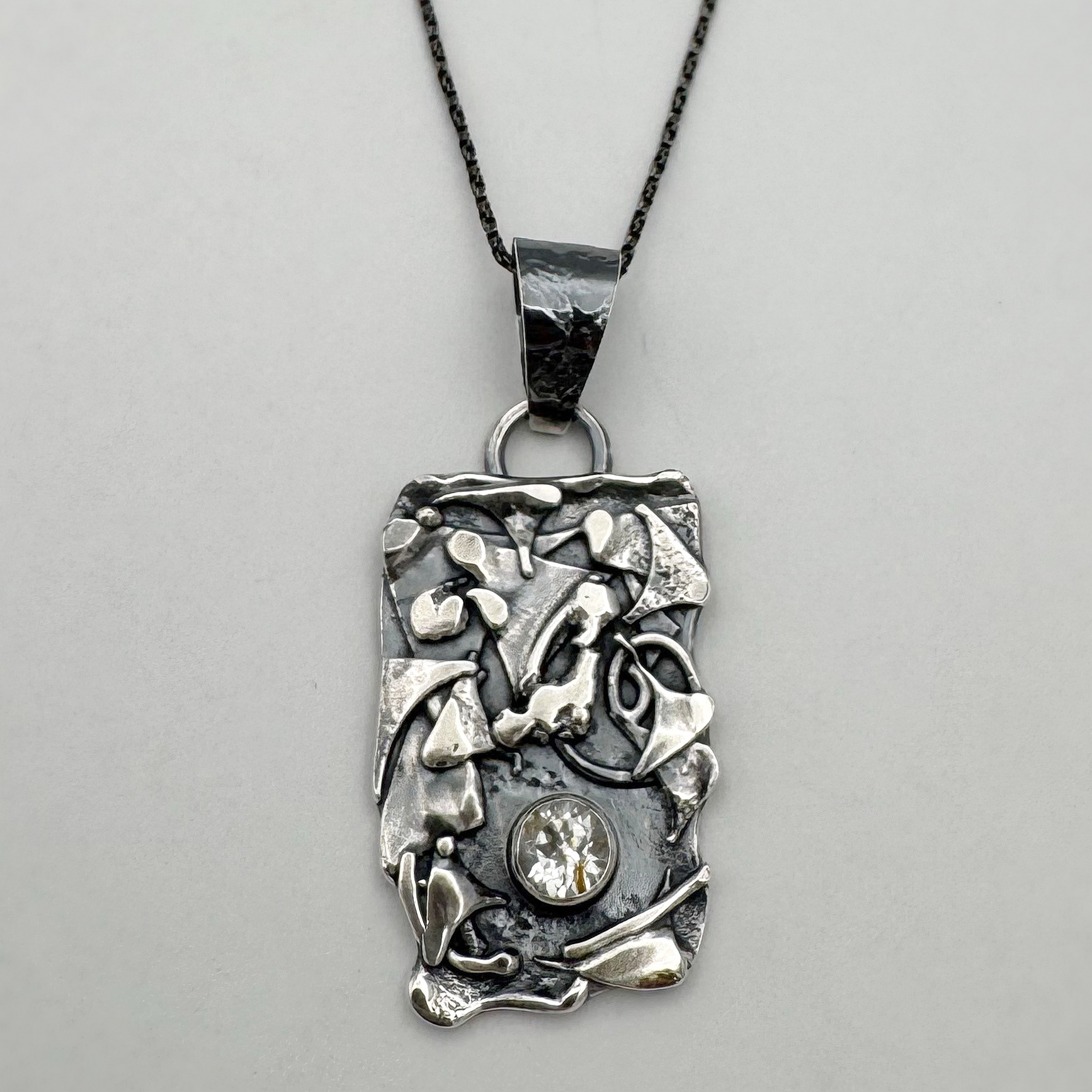 Argentium Silver (antiqued), White Topaz (0.75 carat)