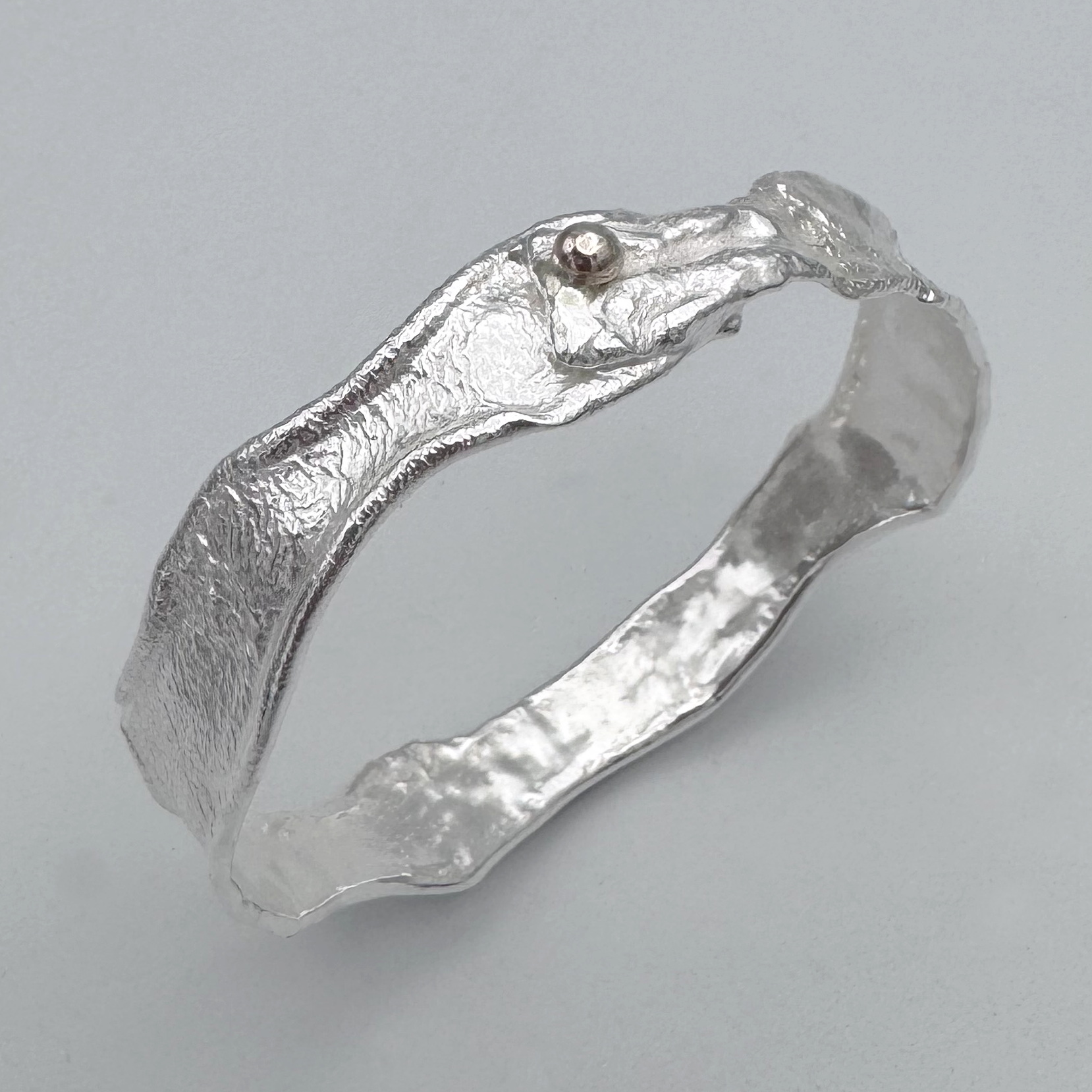 Reticulated Silver Bangle with Gold Ball by Barbara Adams