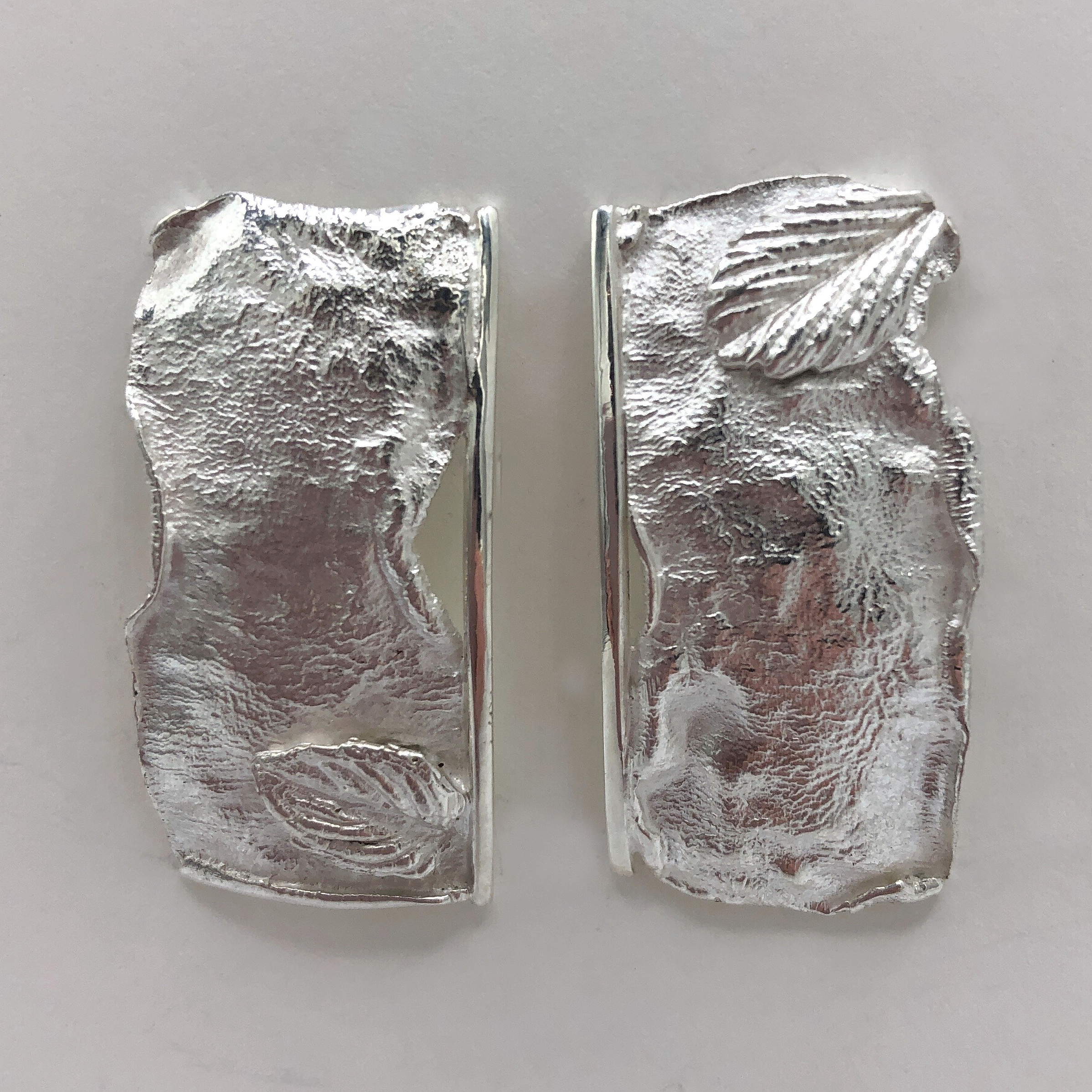 Reticulated Silver Rectangular Leaves Earrings by Andrea Russell
