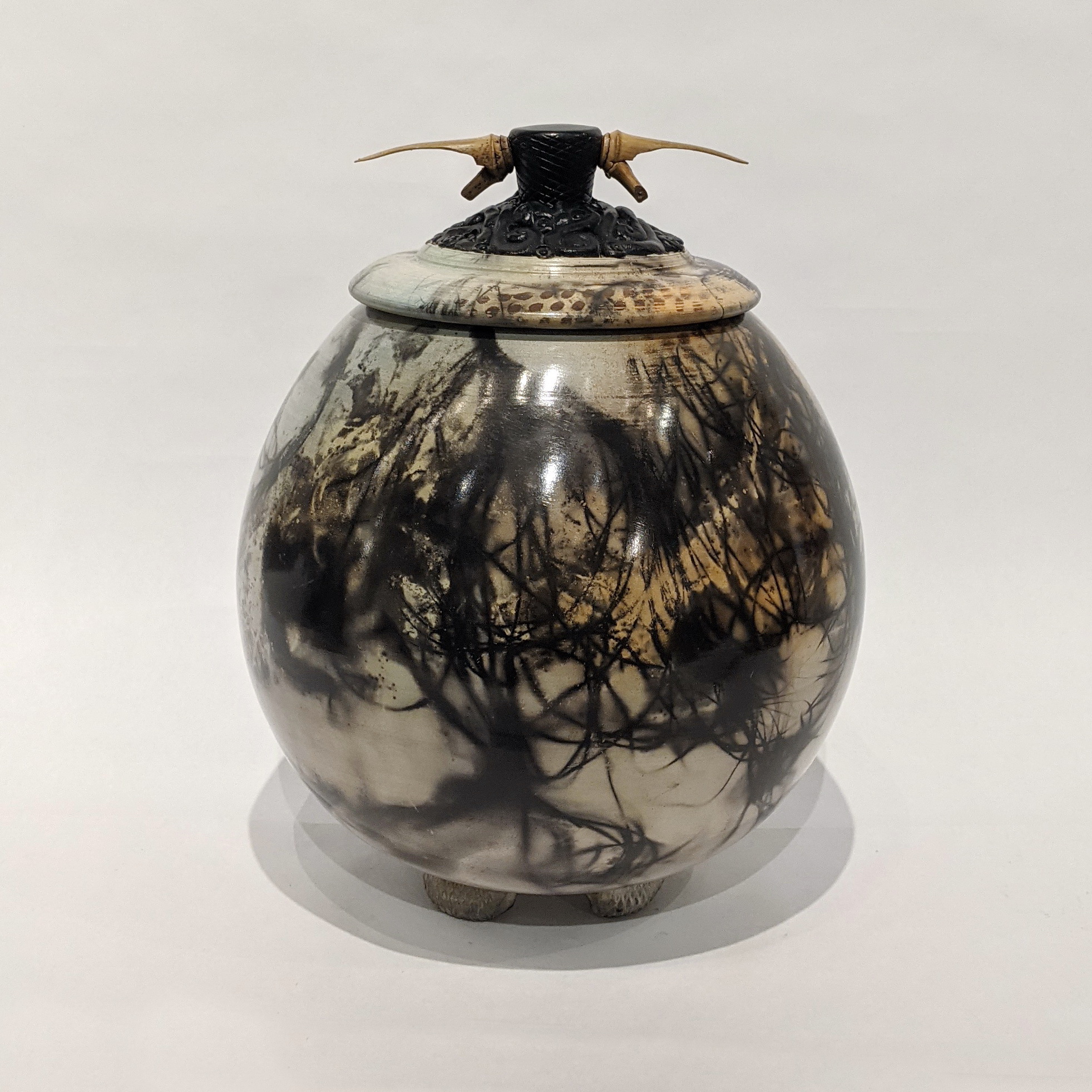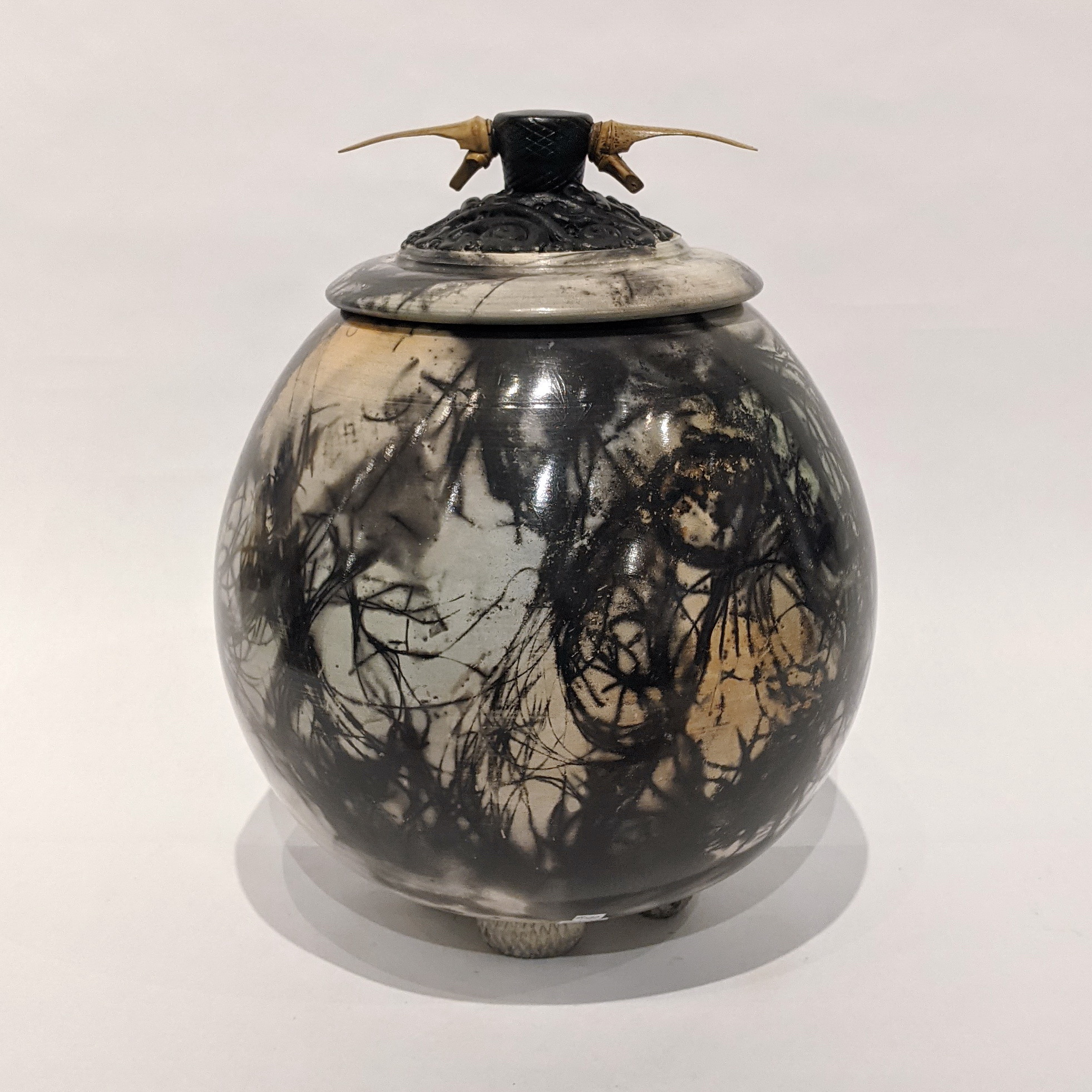 Large Round-Shape Vase with Double Top and Gold by Geoff Searle
