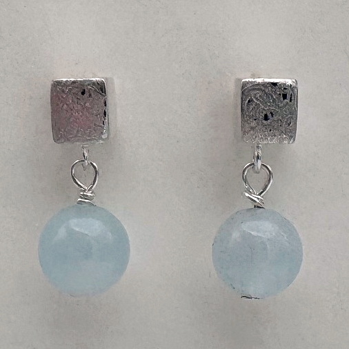 Scribbled Cube Stud Earrings with Aquamarine by Chi’s Creations