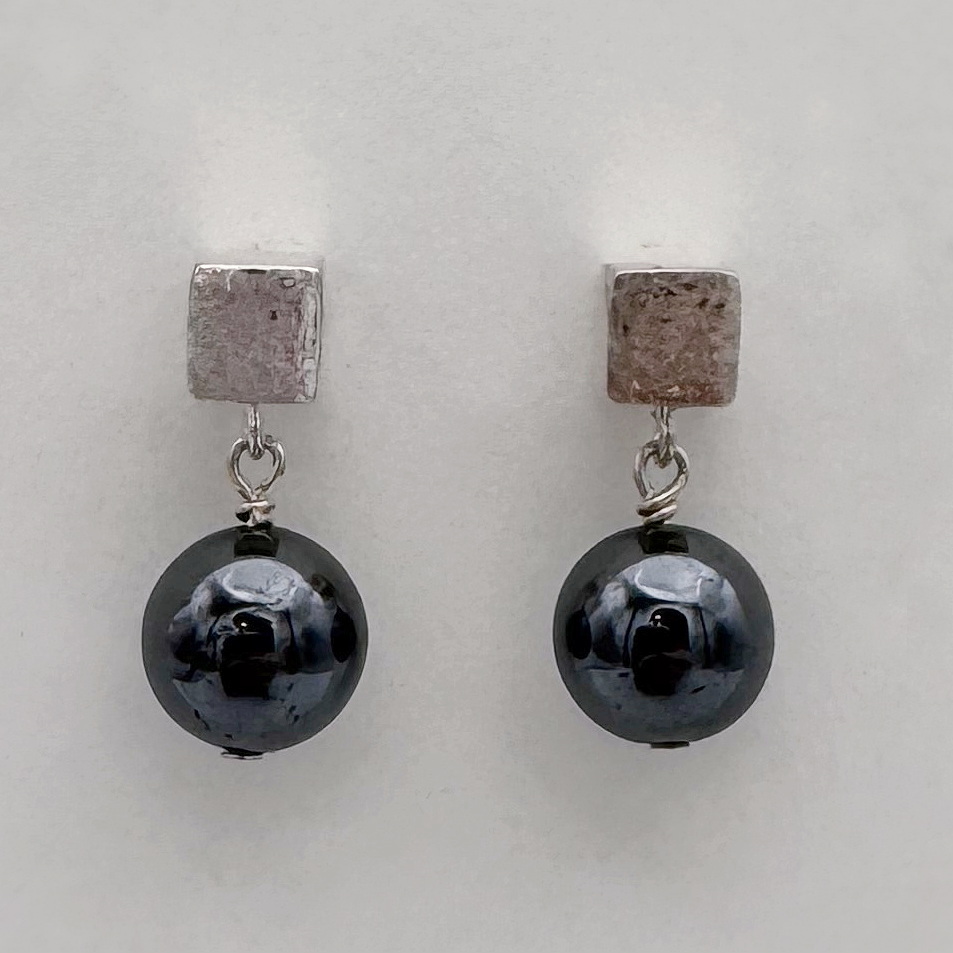 Scribbled Cube Stud Earrings with Hematite by Chi’s Creations