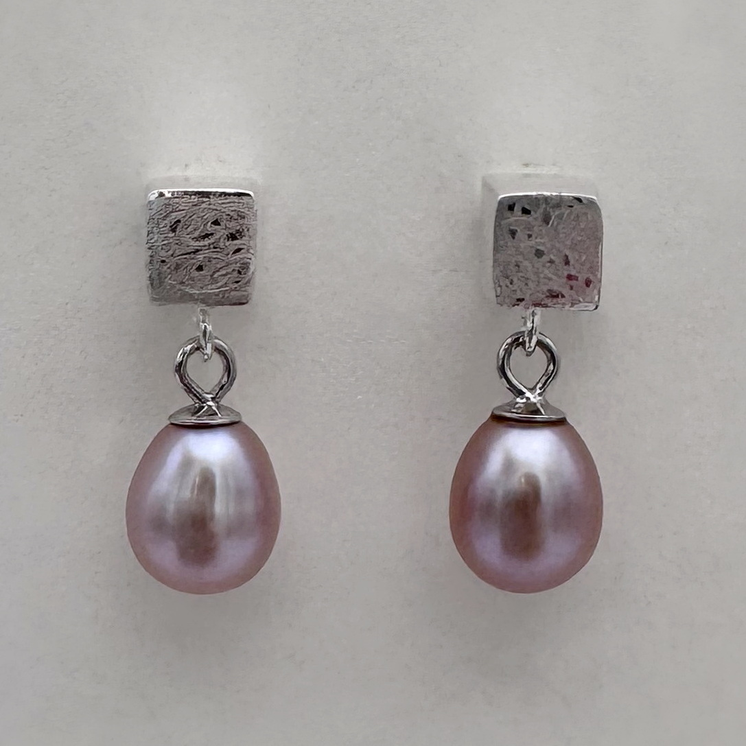 Scribbled Cube Stud Earrings with Pink Pearls by Chi’s Creations