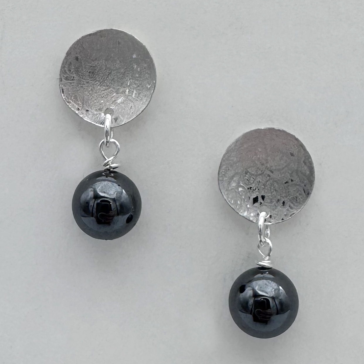 Scribbled Round Disc Earrings with Hematite by Chi’s Creations