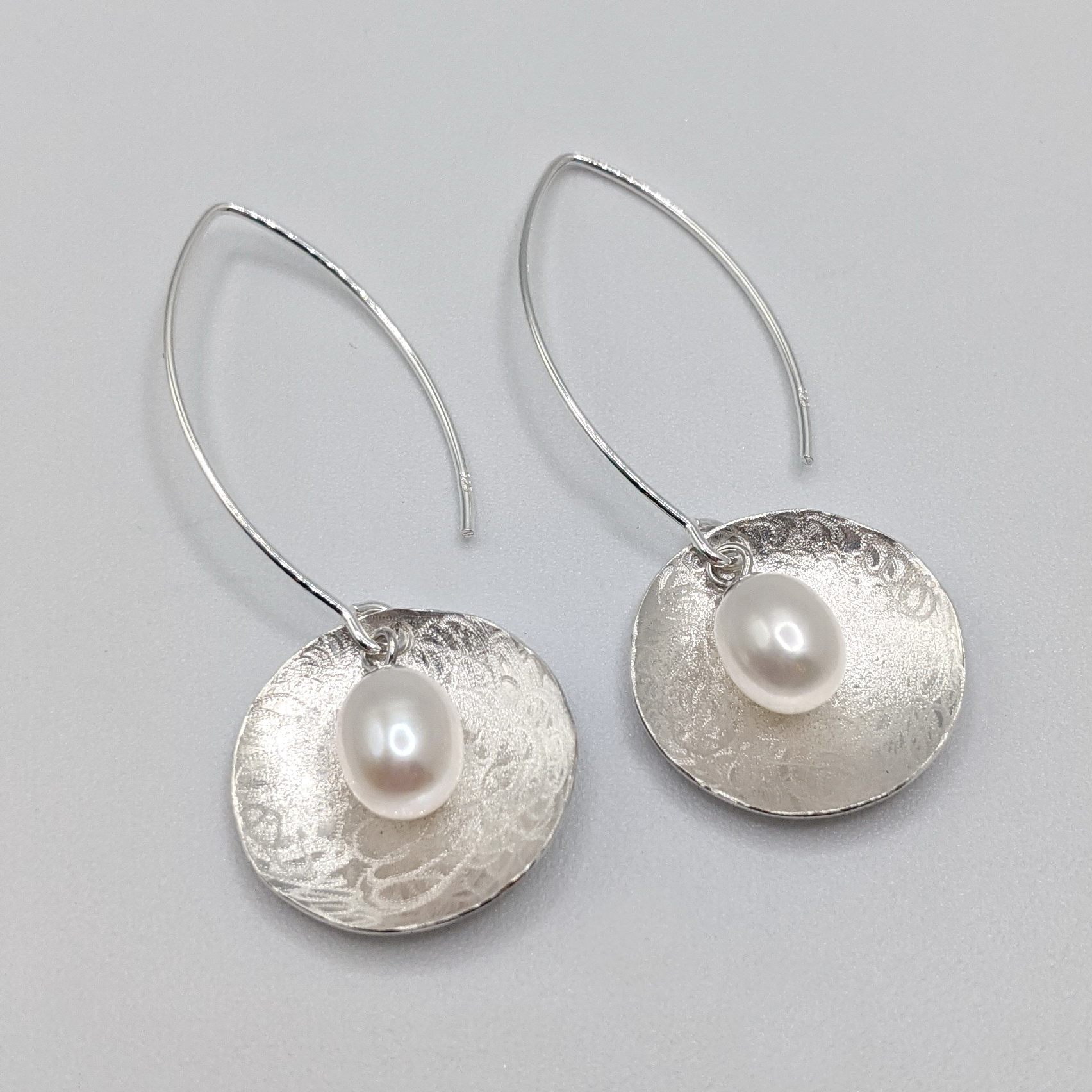 Scribbled Shell with White Pearl Earrings by Chi’s Creations