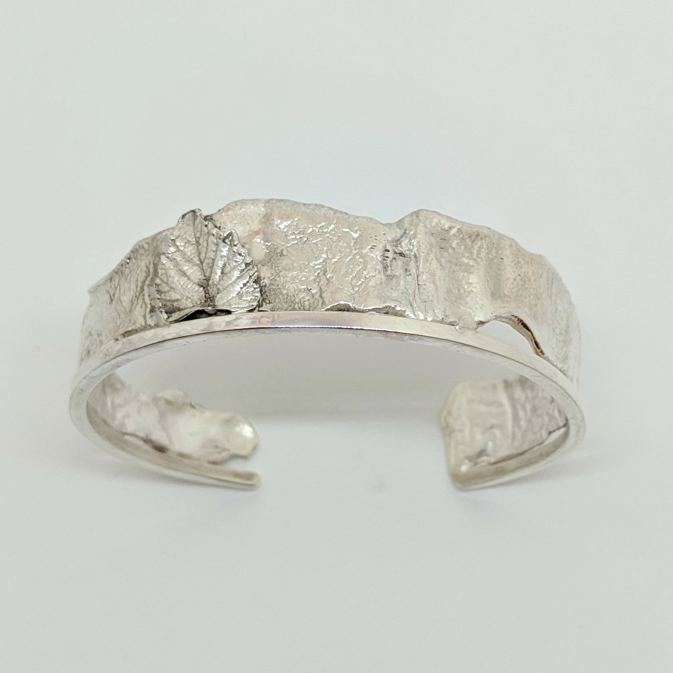 Silver Cuff Bracelet with Cast Leaf by Andrea Russell