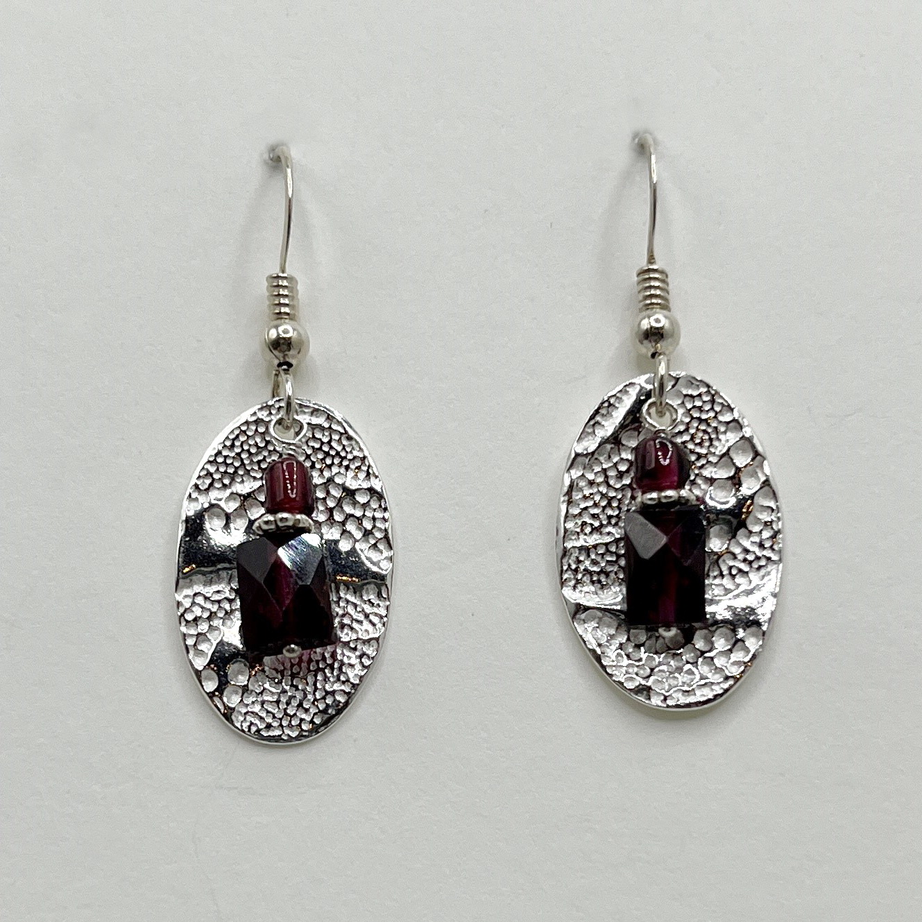 Fine Silver, Garnet, Sterling Silver Hooks