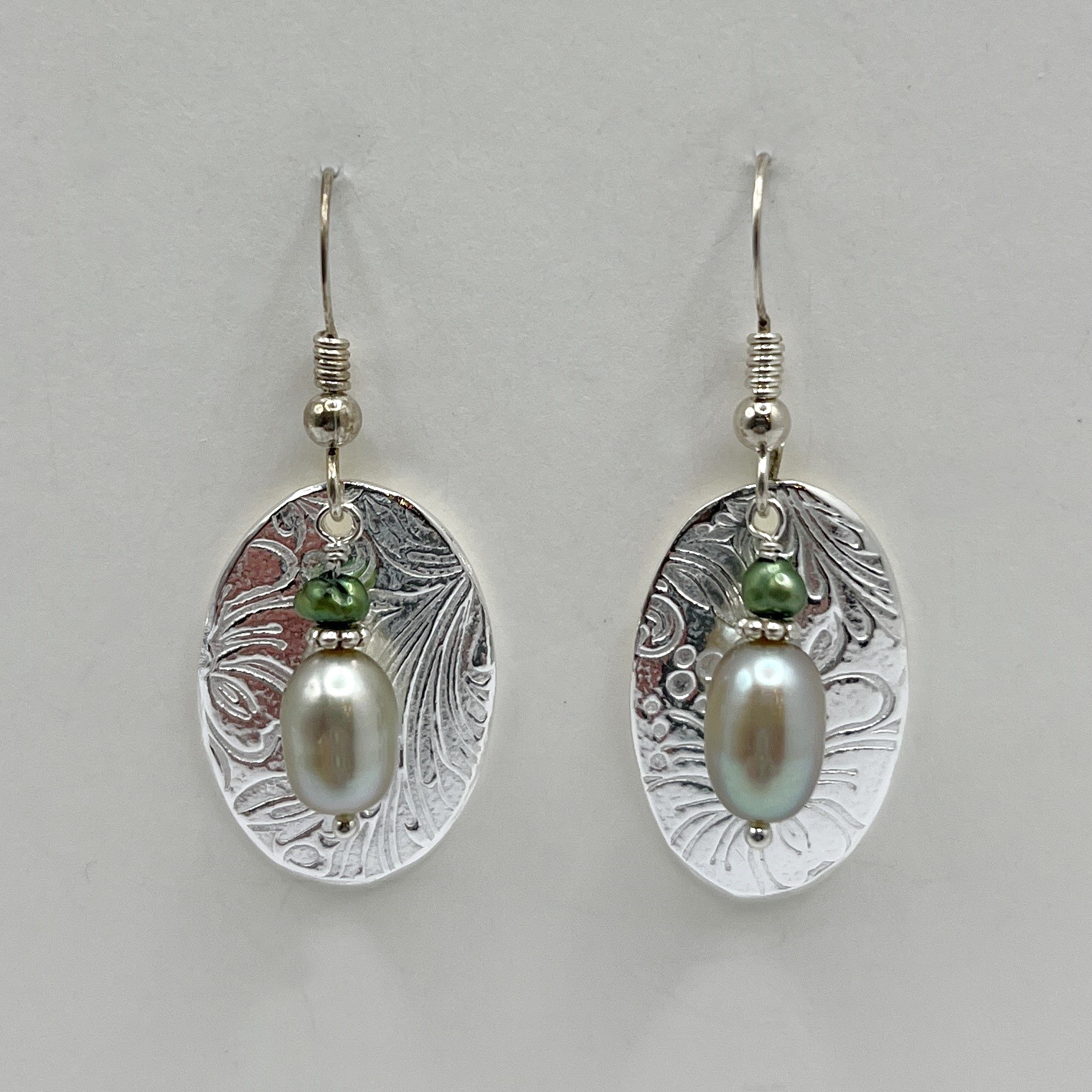 Fine Silver, Green Pearls, Sterling Silver Hooks