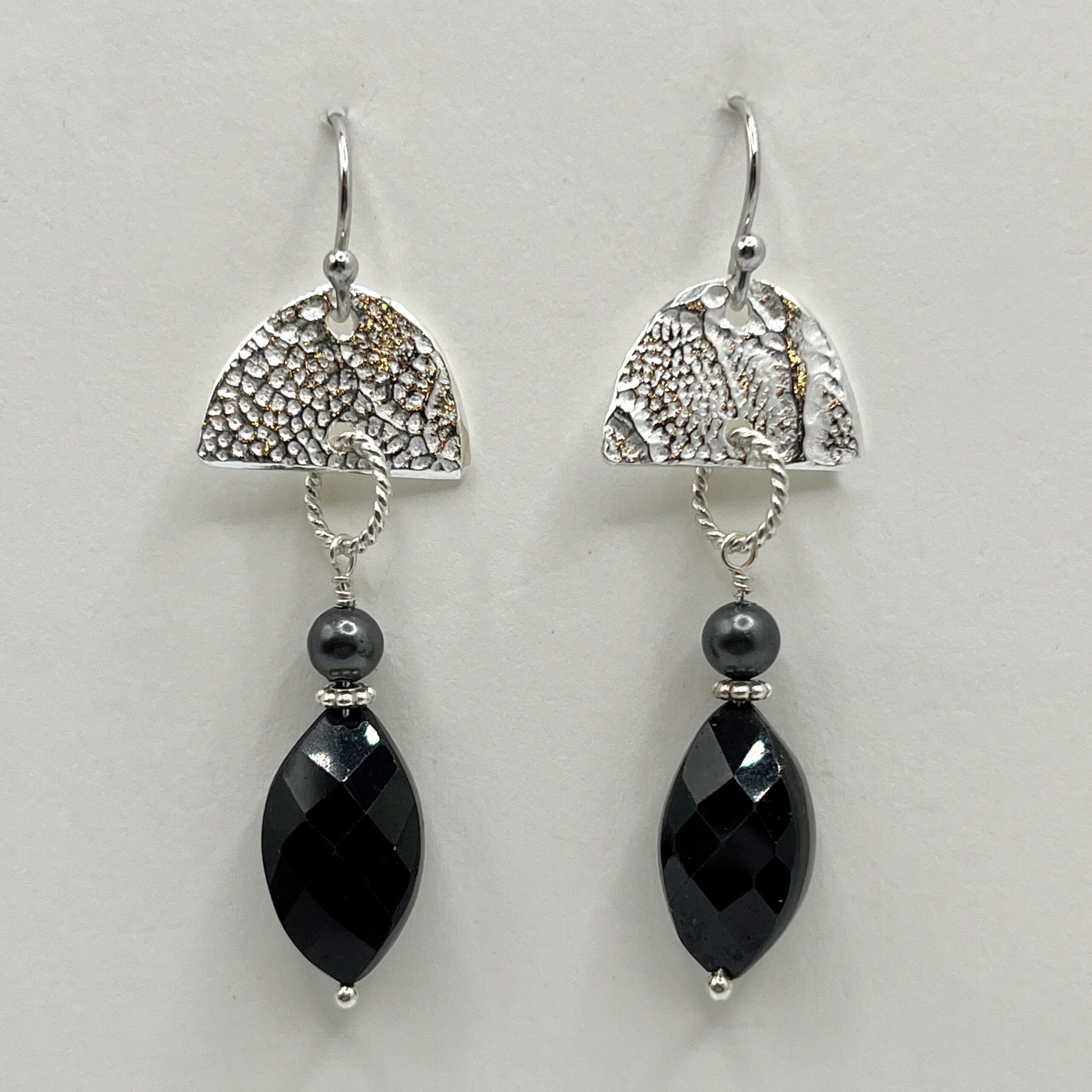 Fine Silver, Onyx, Sterling Silver Hooks