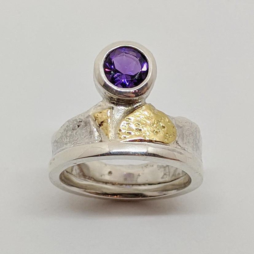 Silver, Gold & Amethyst Ring by Andrea Russell
