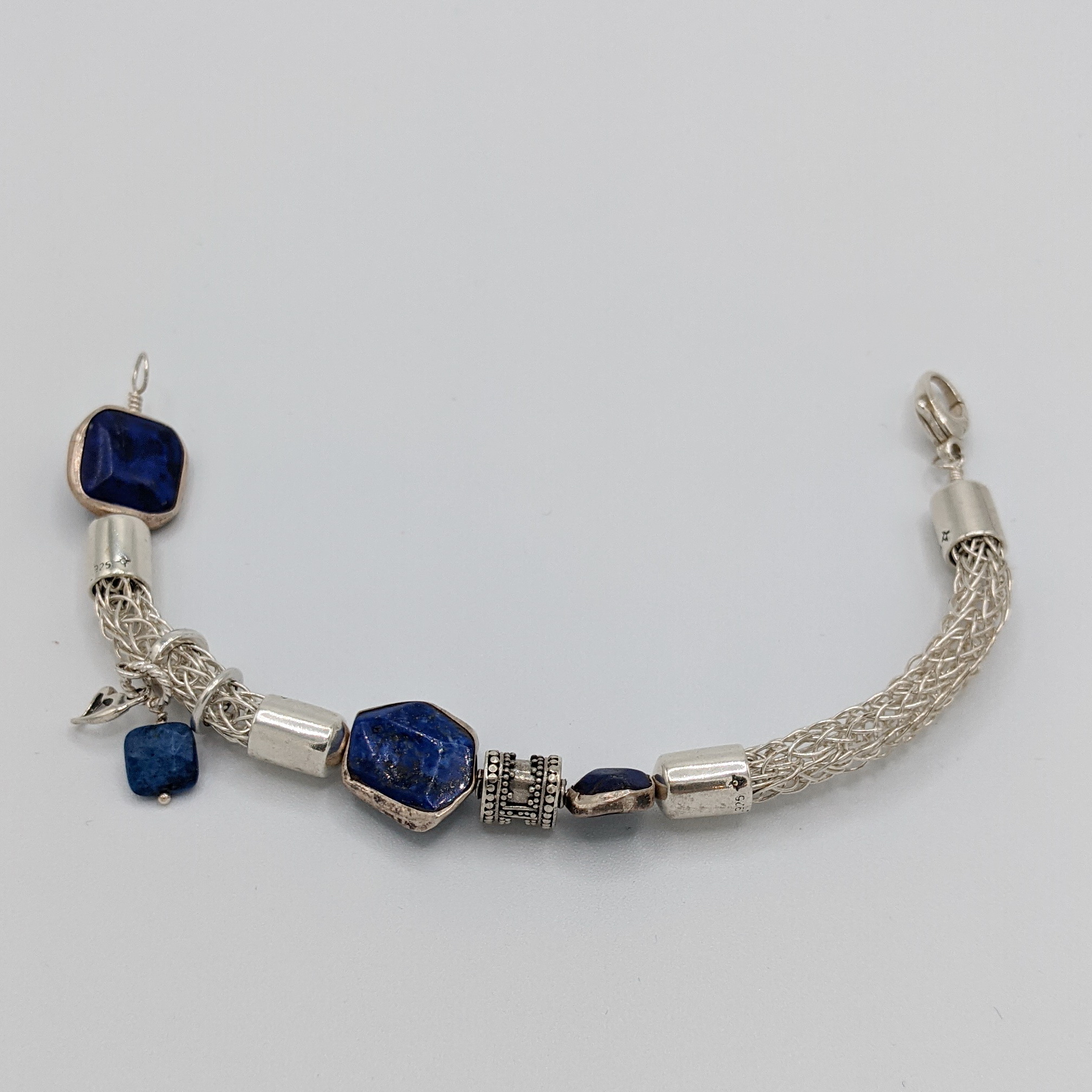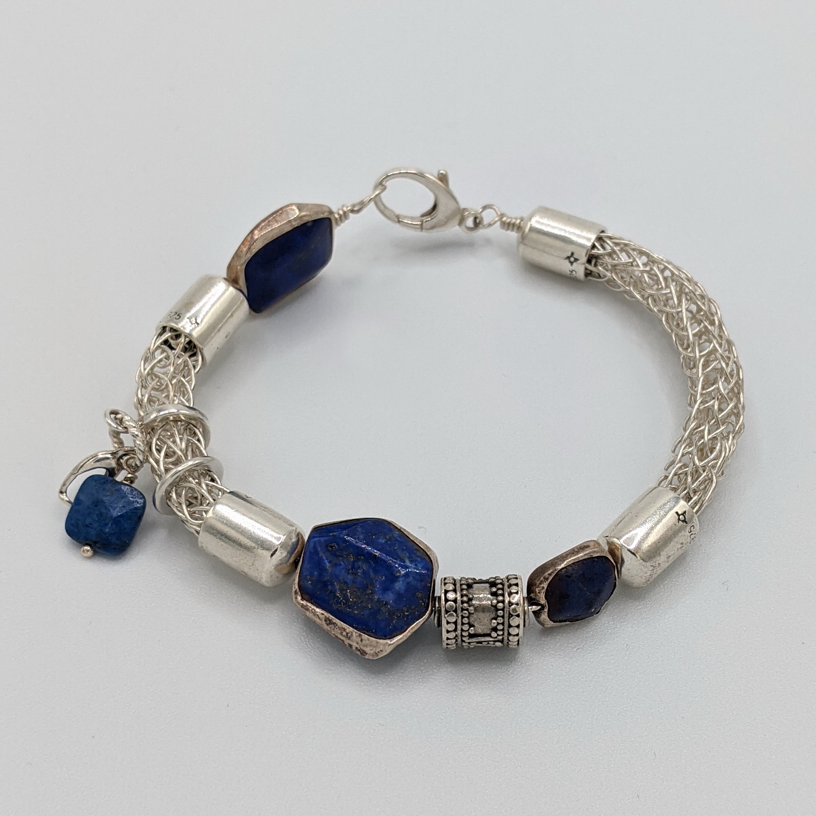 Silver Viking Knit Bracelet with Lapis by Veronica Stewart