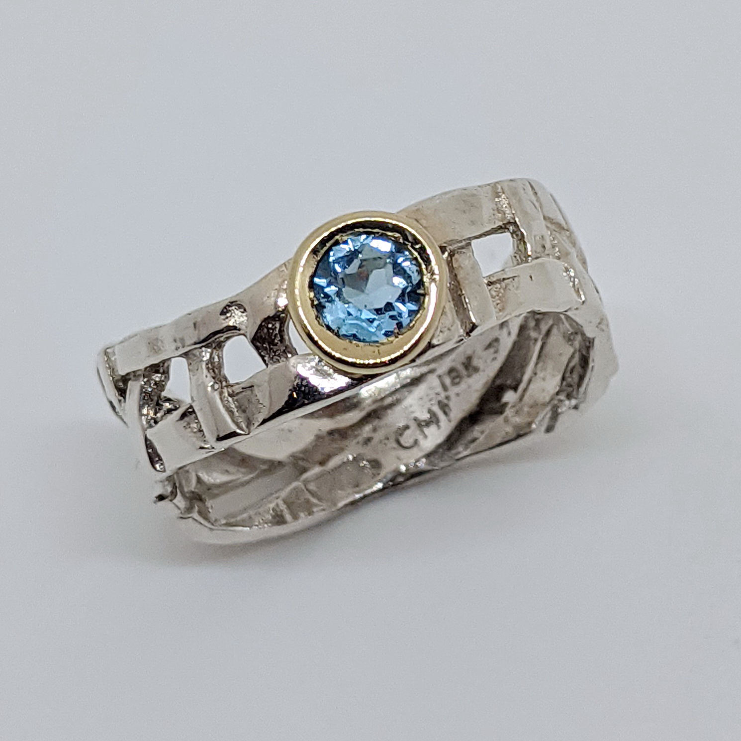 Skinny Woven Basket Ring with Blue Topaz by Chi’s Creations
