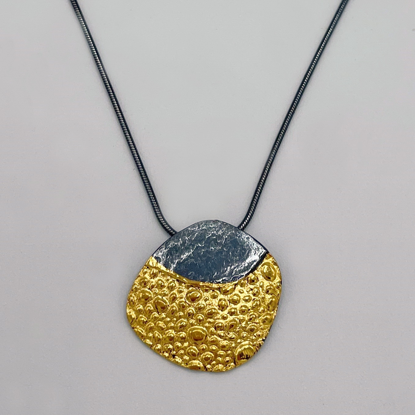 Cast Silver with KeumBoo, Sterling Silver chain