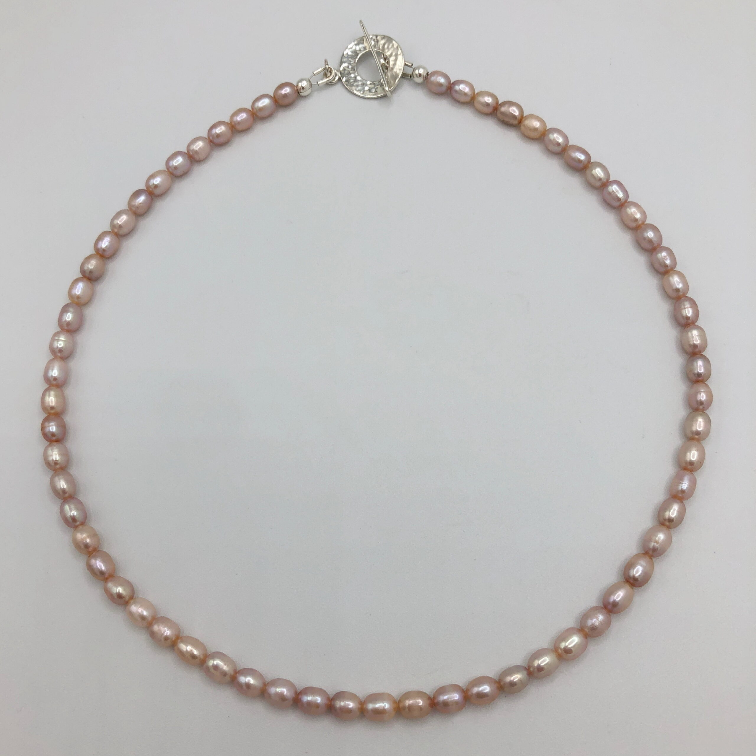 4mm Freshwater Pearls, Hammered Sterling Silver clasp