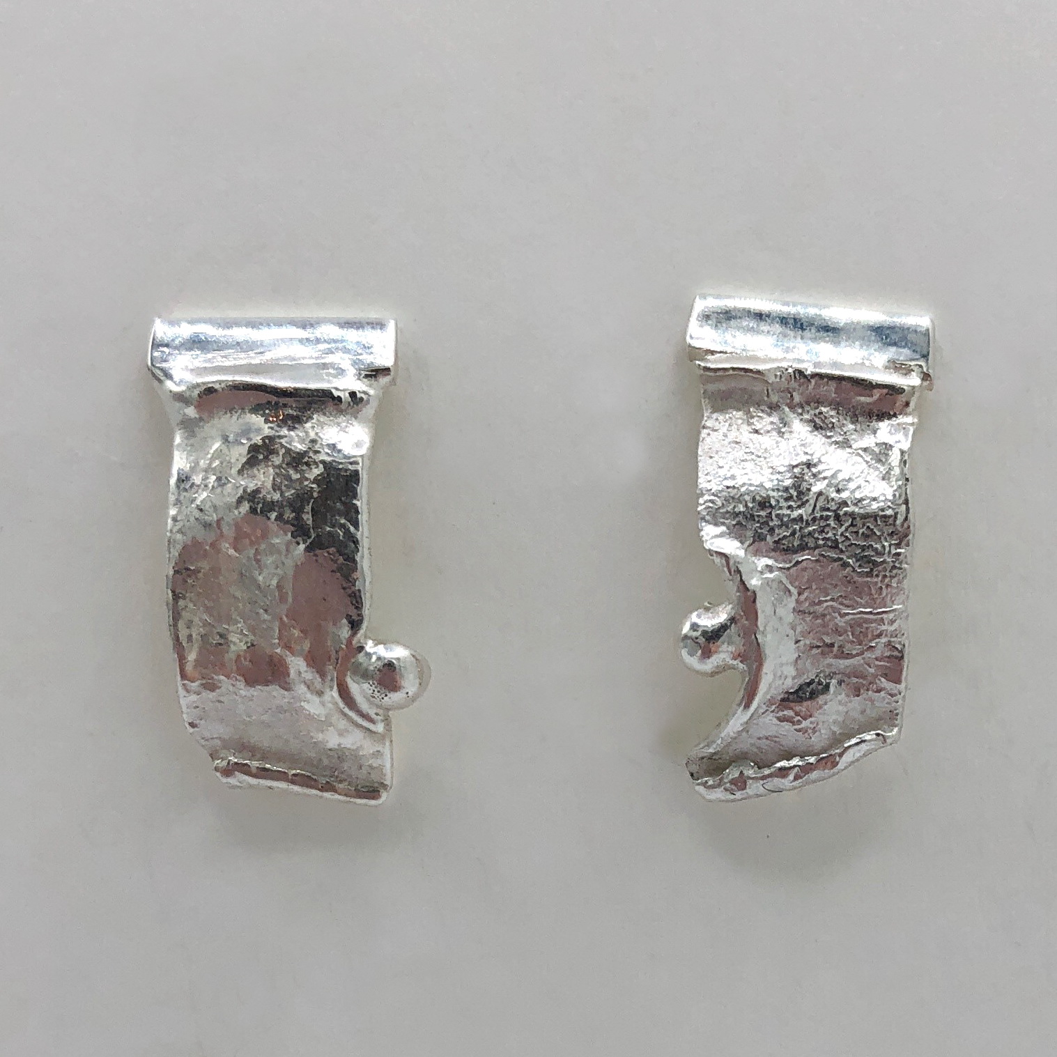 Reticulated Silver Rectangular Leaves Earrings by Andrea Russell