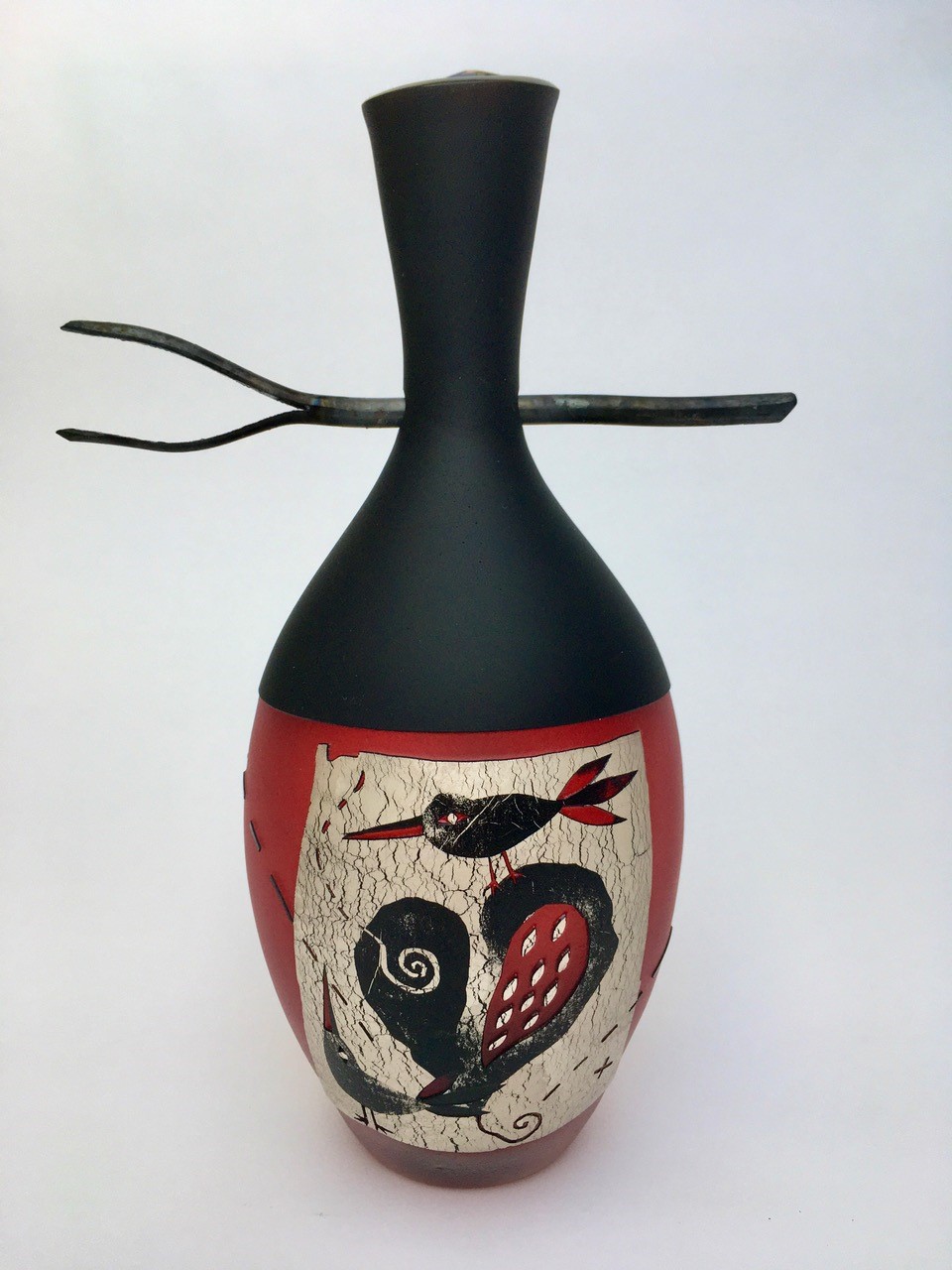 Small Twig Vase ‘Serenity’ #43 (Red) by Naoko Takenouchi