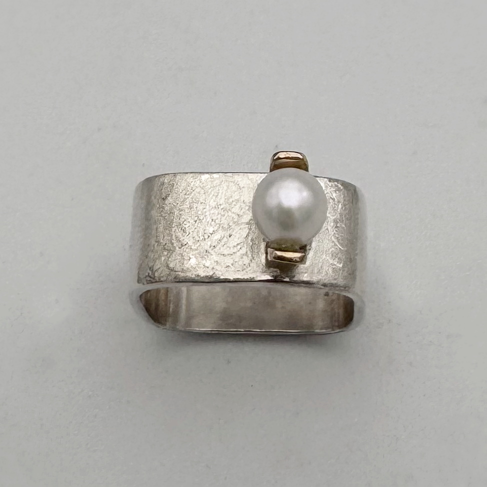 Square Stacker Ring with 14kt Gold and White Pearl by Chi’s Creations