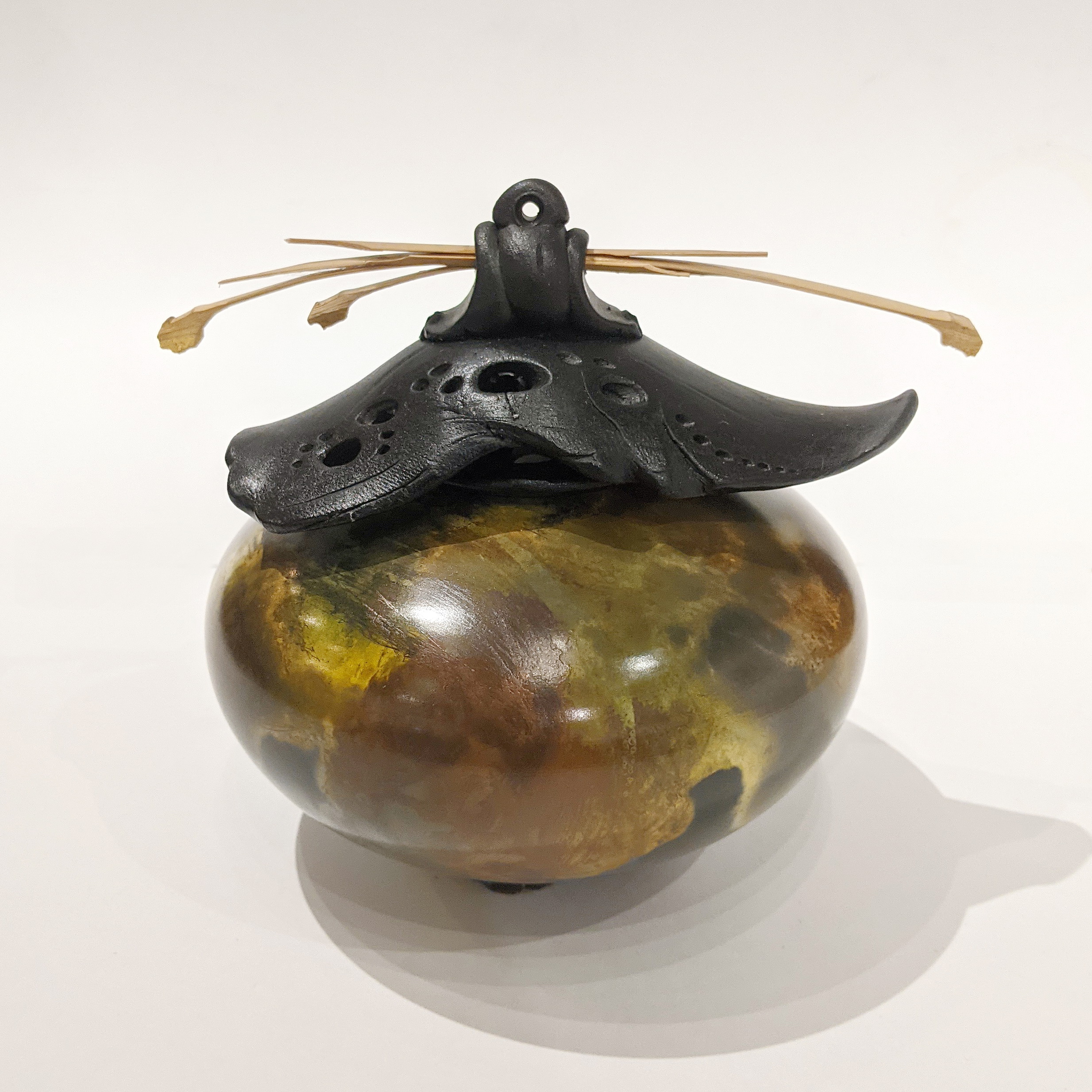 Squat Oval Vase with Top by Geoff Searle
