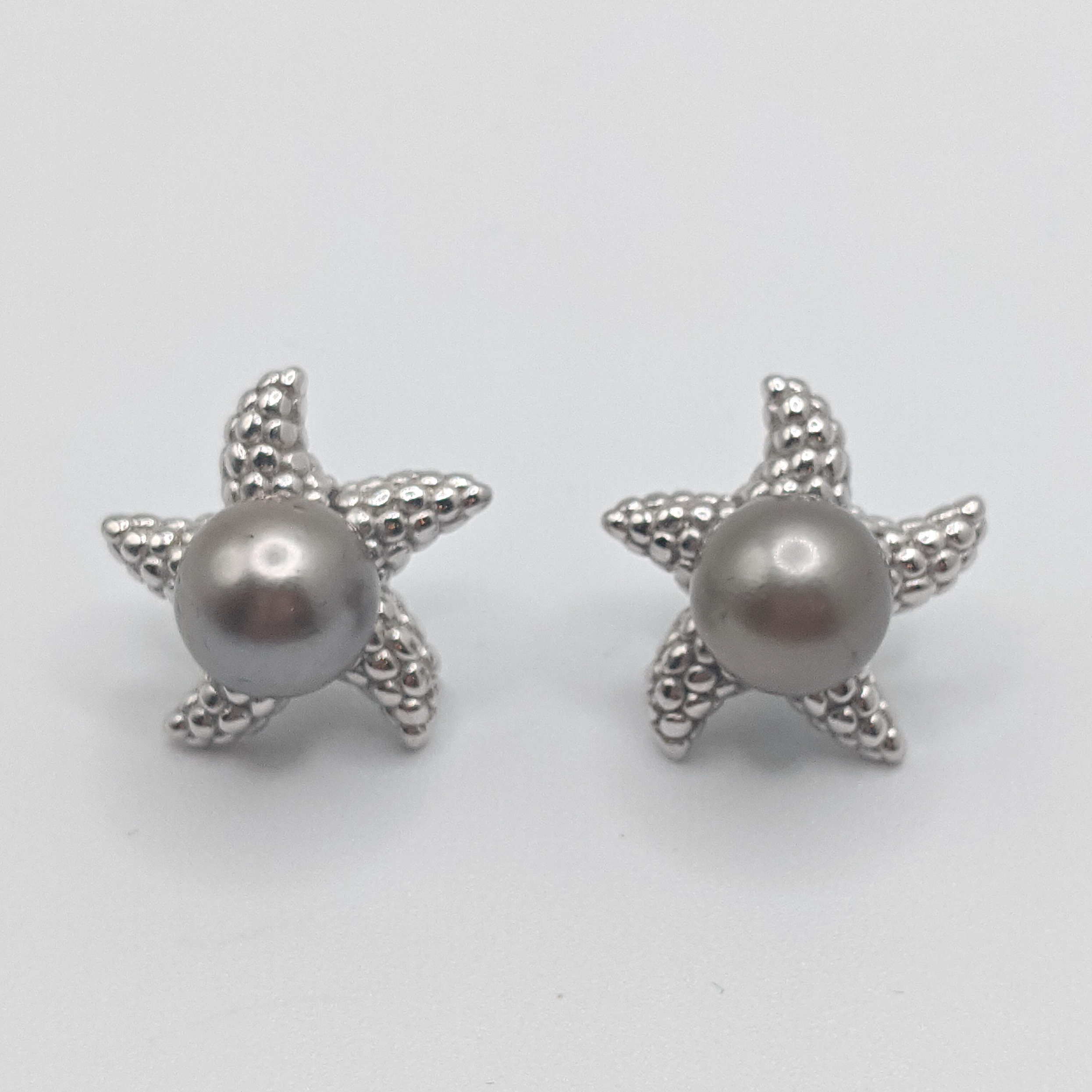 Starfish Sterling Silver Earrings mounted with Tahitian Pearls by Val Nunns