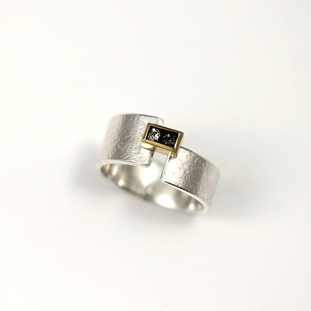 Sterling Silver, 18kt. Gold & Black Diamond Cube Ring by Brenda Roy