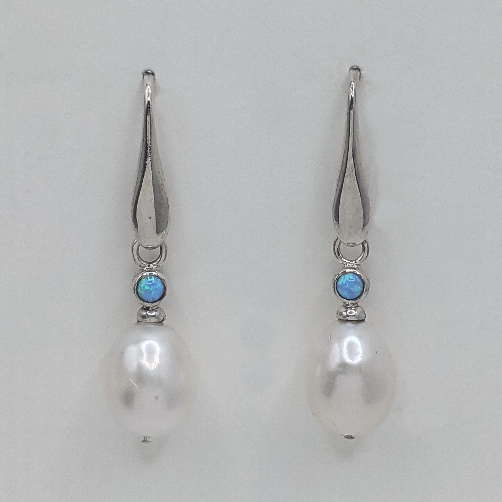 Sterling Silver Setting with a Small Opal and Freshwater Pearl by Val Nunns