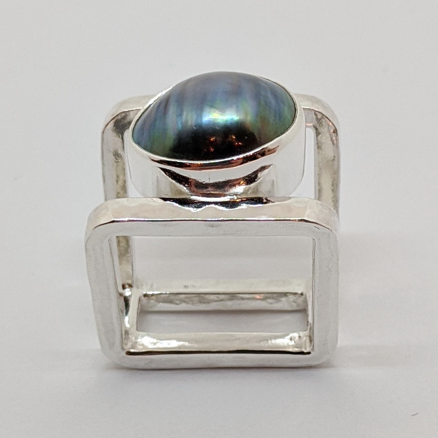 Double Square Band Ring with Tahitian Mabe Pearl by A & R Jewellery