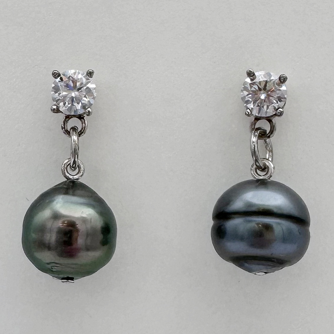 Tahitian Pearl & Lab Grown Diamond Earrings by Val Nunns