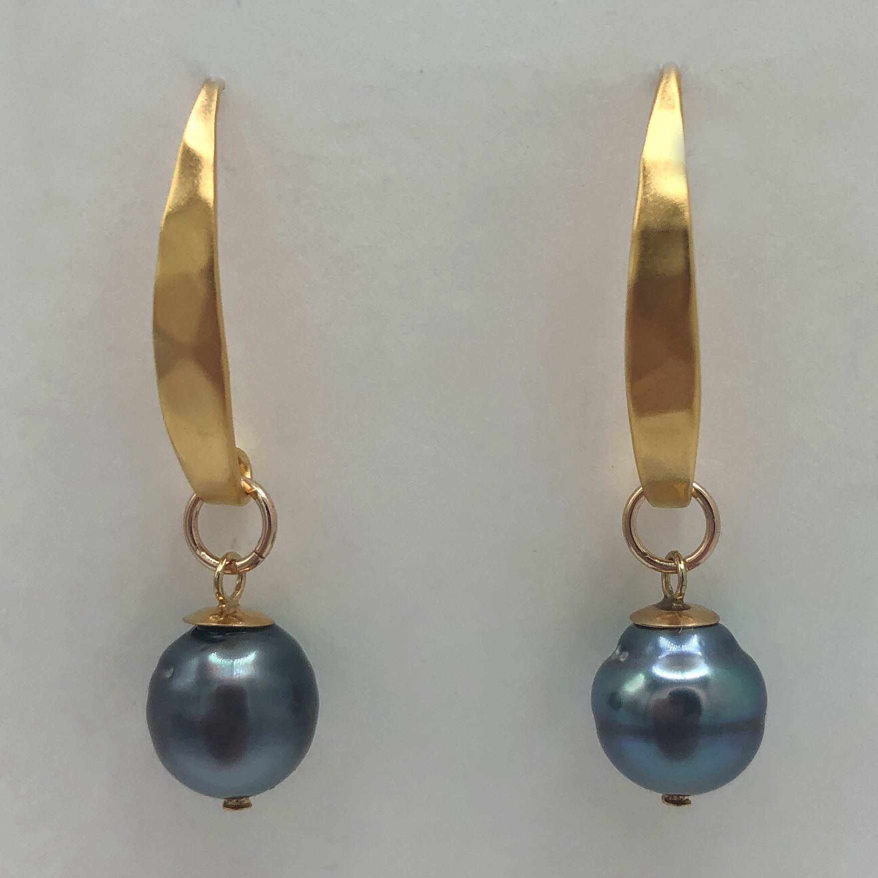 Tahitian Pearl & Yellow Gold-Plated Earrings by Val Nunns