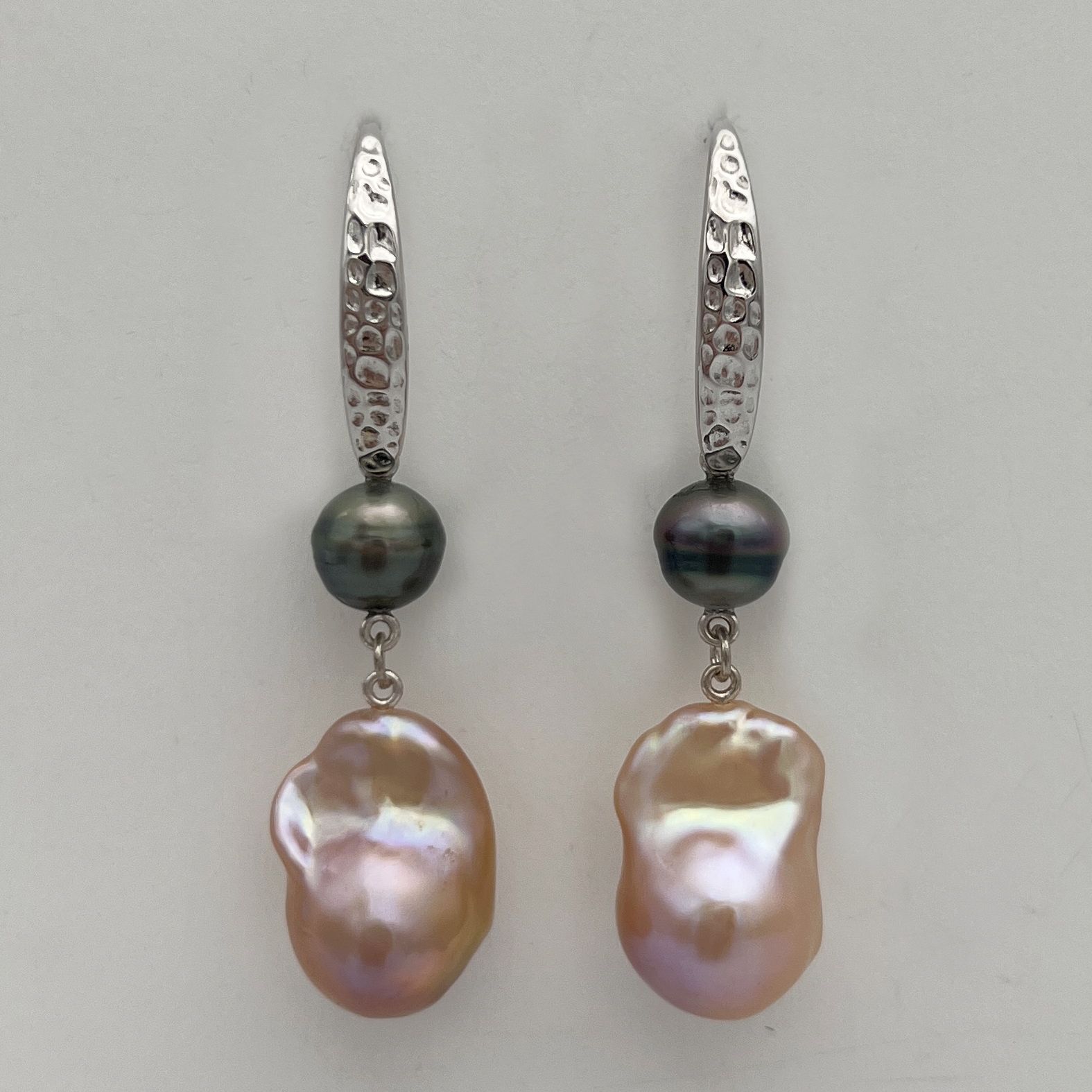 Tahitian & Pink Baroque Pearl Earrings by Val Nunns