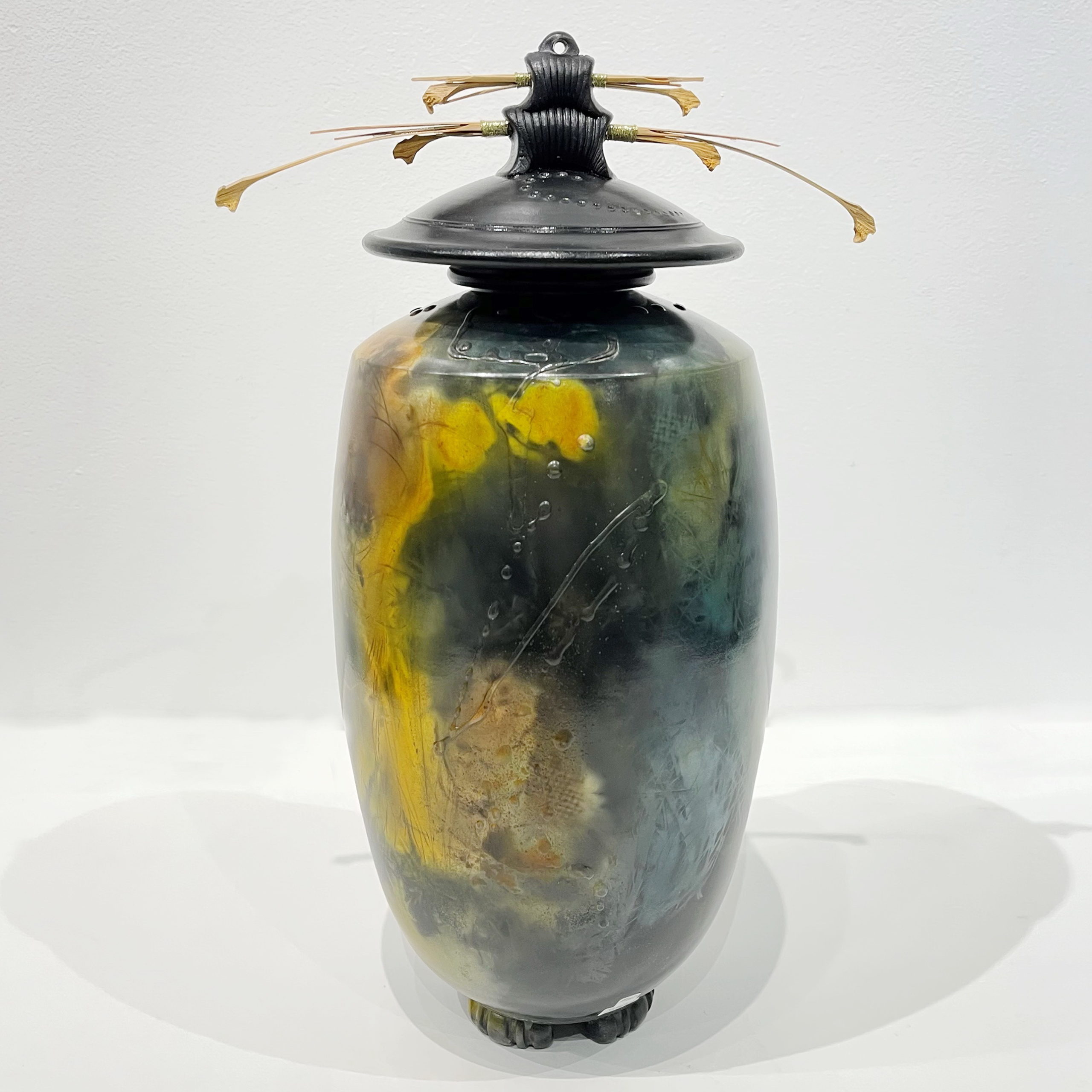 Tall Vase with Double Top & Gold by Geoff Searle